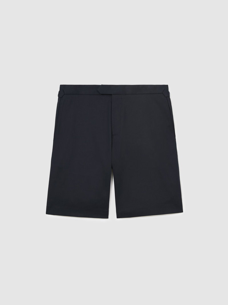 The Navy Cantwell shorts take on a tailored feel with a straight fit and buckled side-adjusters for the perfect fit. They’re crafted from a premium cotton blend with a subtle lustre.