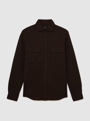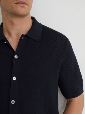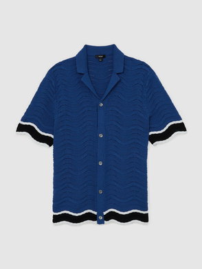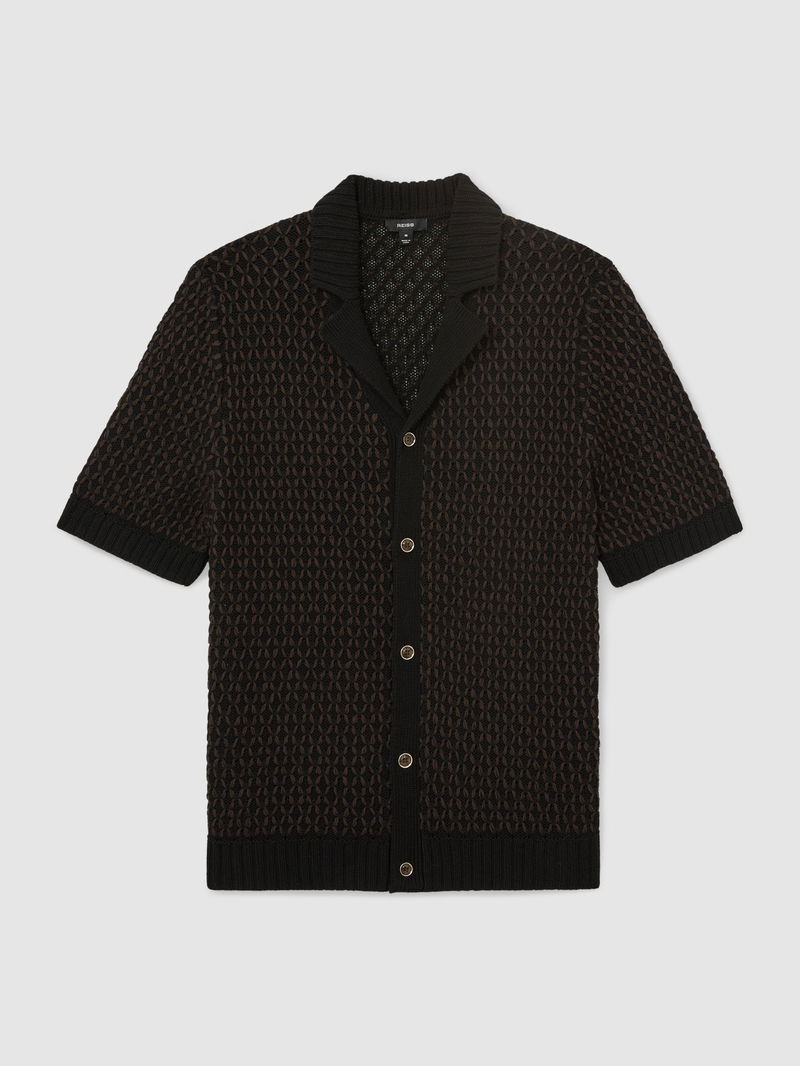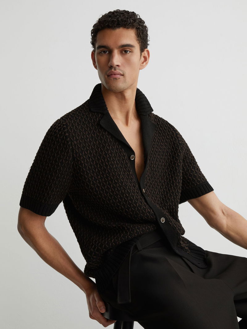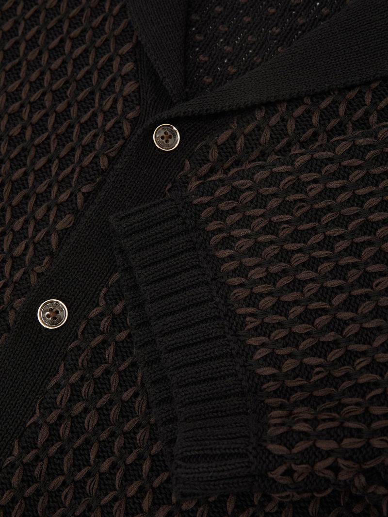 Cotton-Blend Stitch-Detail Knitted Shirt In Black/Chocolate Brown