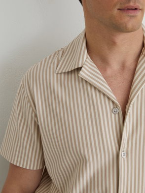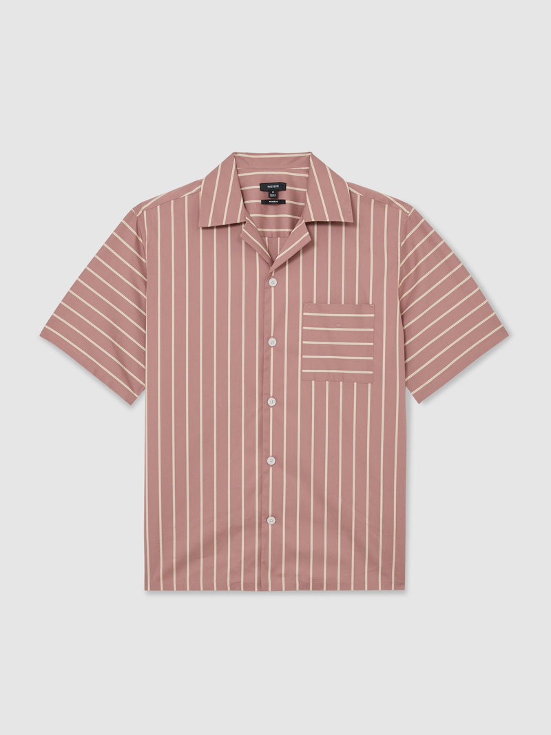 Cotton-Blend Stripe Cuban-Collar Shirt In Dusty Pink