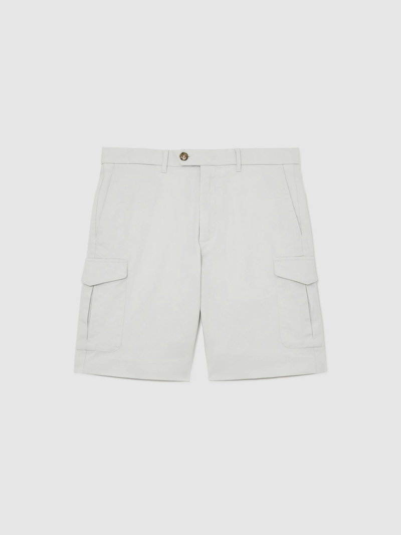 Cotton Cargo Chino Shorts With Stretch In Chalk