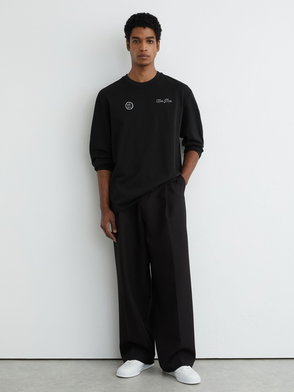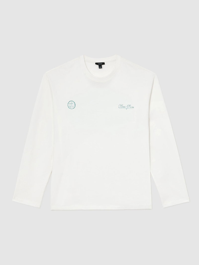 Cotton Motif Long-Sleeve Relaxed T-Shirt In White