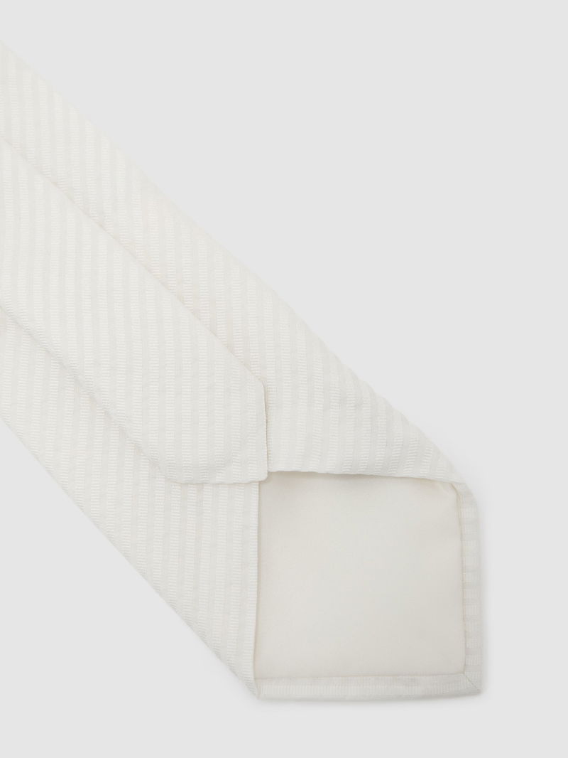 Cotton-Silk Seersucker Stripe Tie In Ivory White