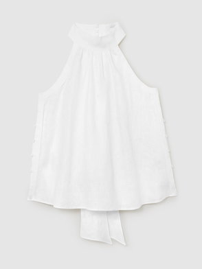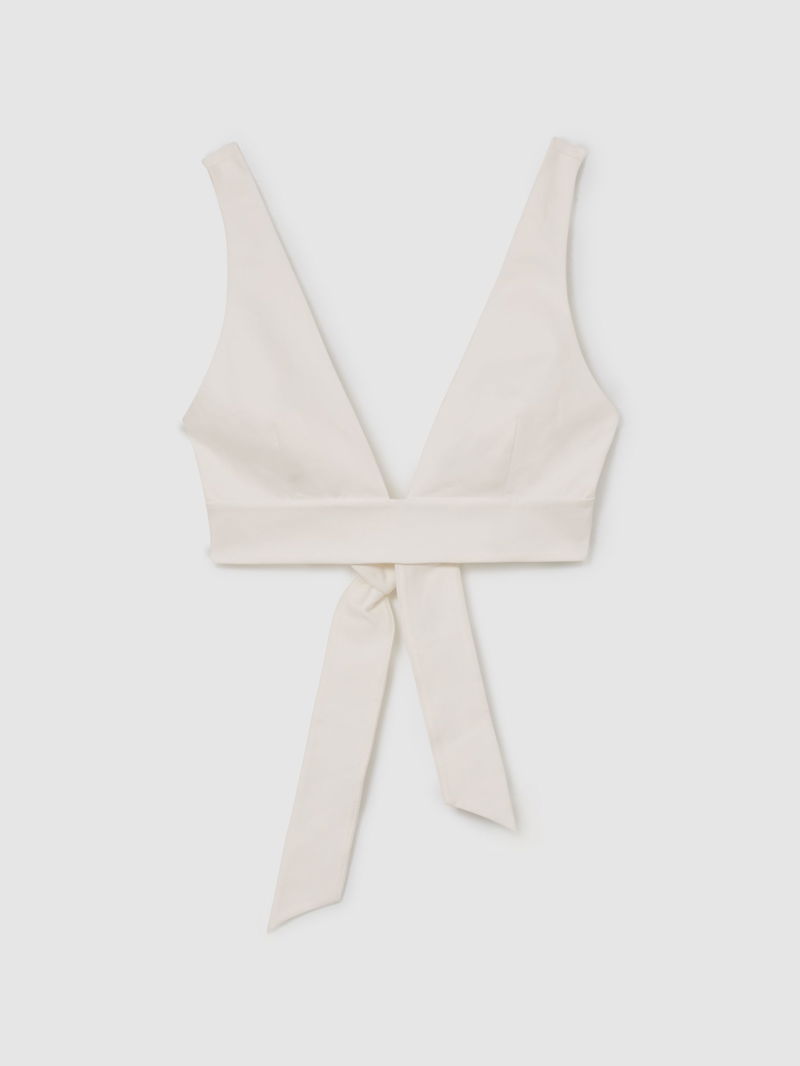 Cotton Tie-Back Plunge Cropped Top In Ivory