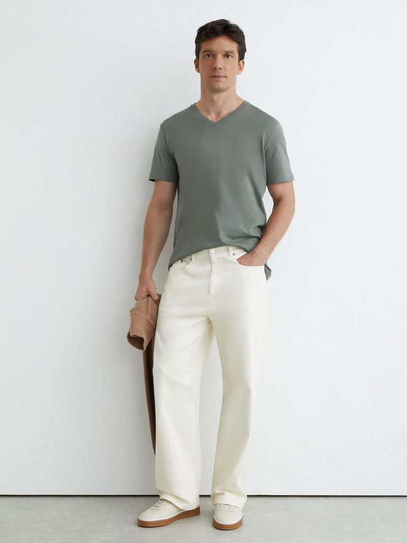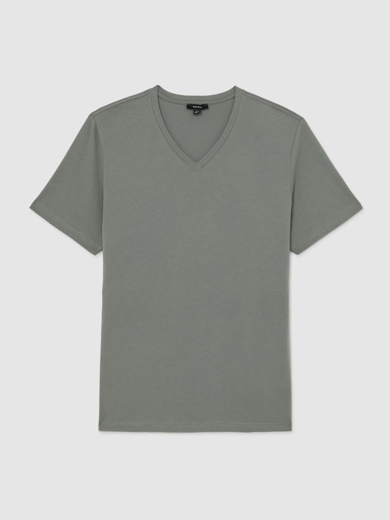 Cotton v-neck tailored-fit t-shirt in sage green. -.100% Cotton.
