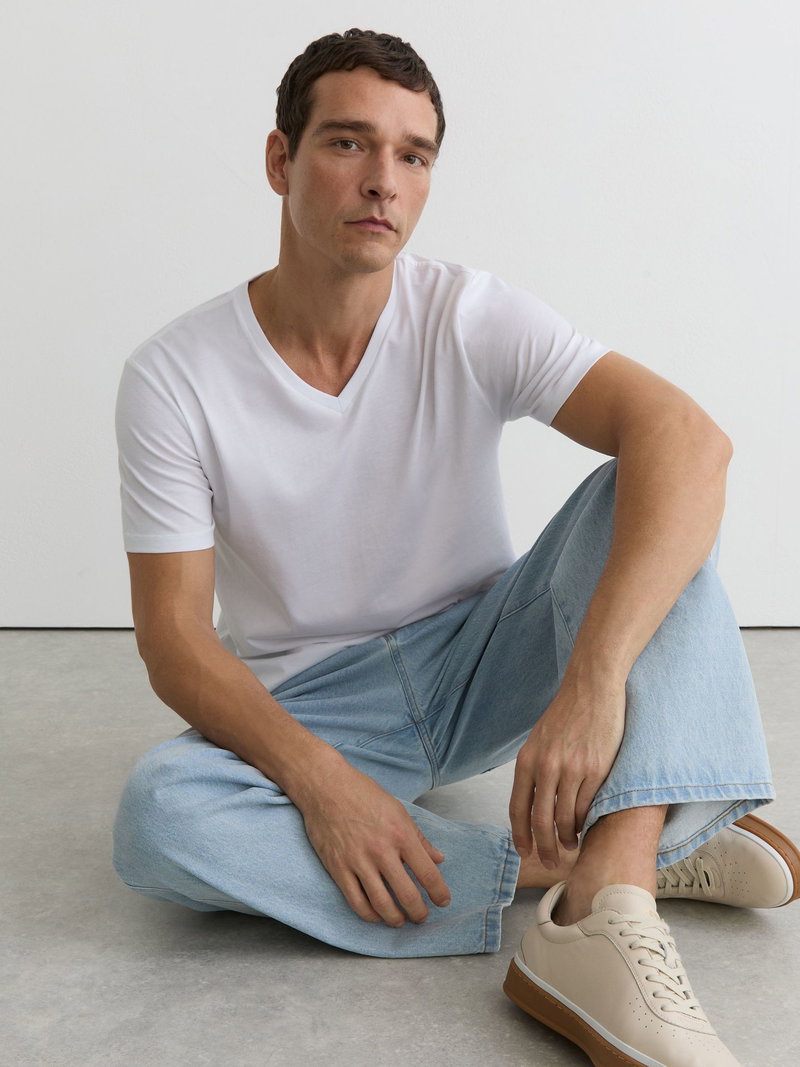 Cotton V-neck Tailored-Fit T-Shirt In White