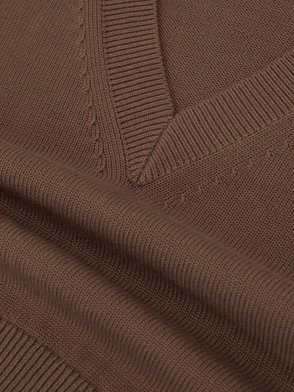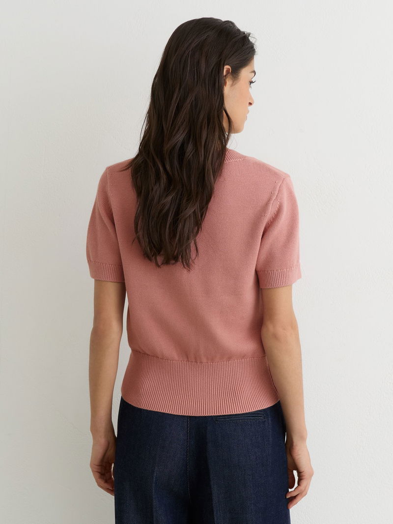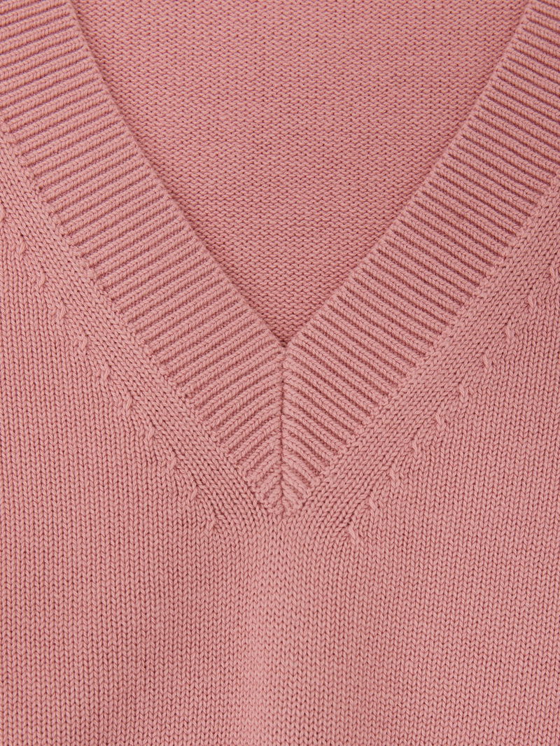 Cotton-Wool Knit V-Neck Top In Pink