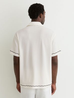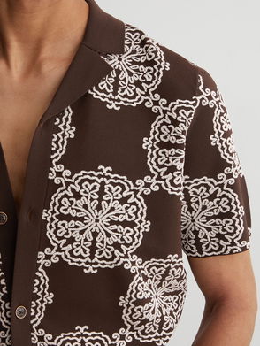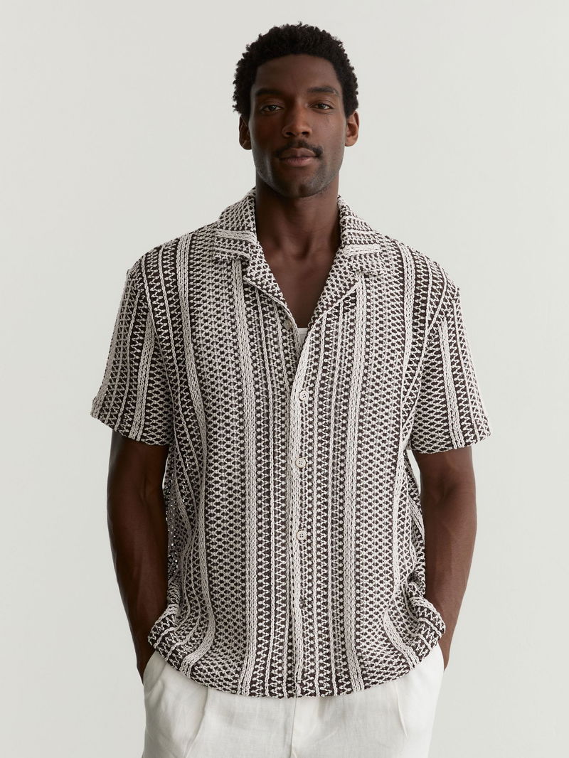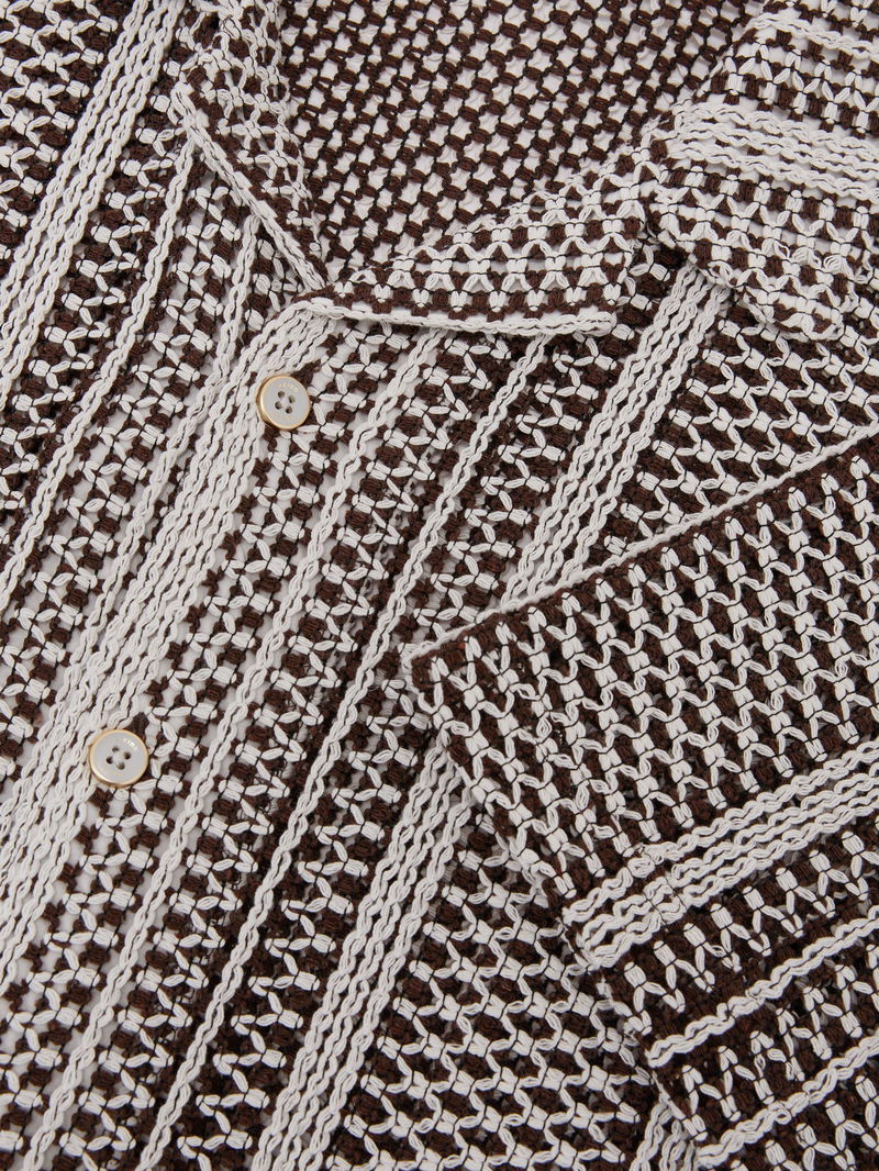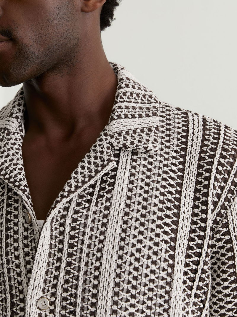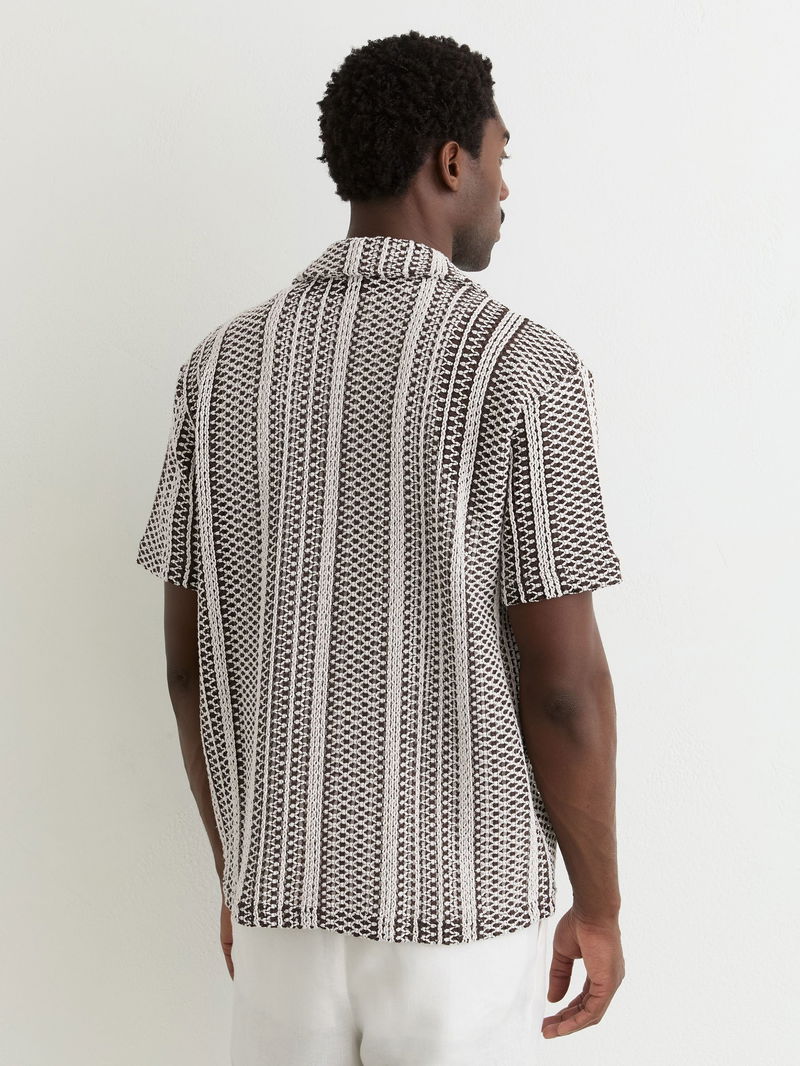 Crochet Stripe Cuban-Collar Shirt In Dark Brown