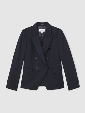 The Millie blazer is a modern take on tailoring, with its cropped, boxy silhouette and double-breasted design. Peak lapels and lightly padded shoulders lend structure, whilst welt pockets and buttoned cuffs add refined finishing touches.