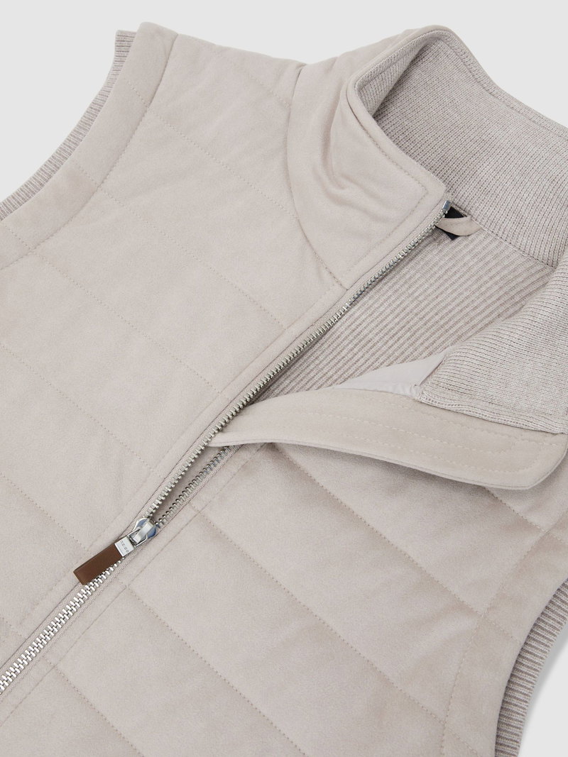 Funnel-Neck Quilted Gilet In Oatmeal