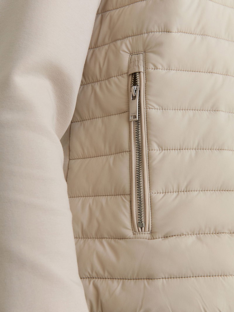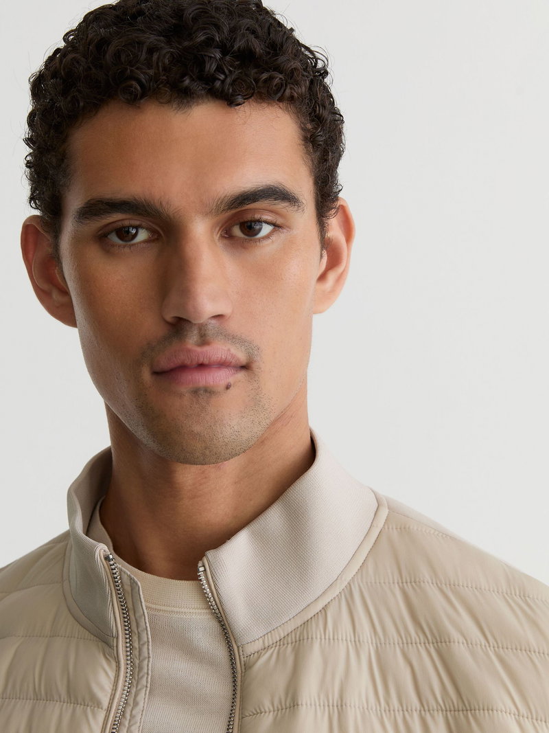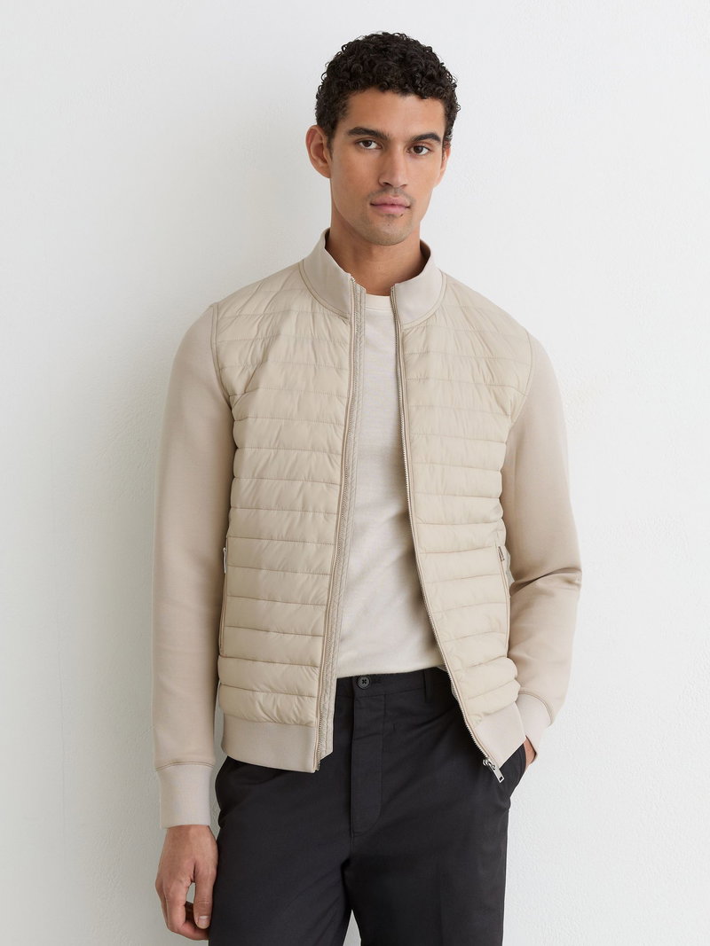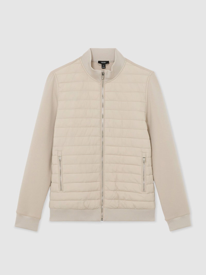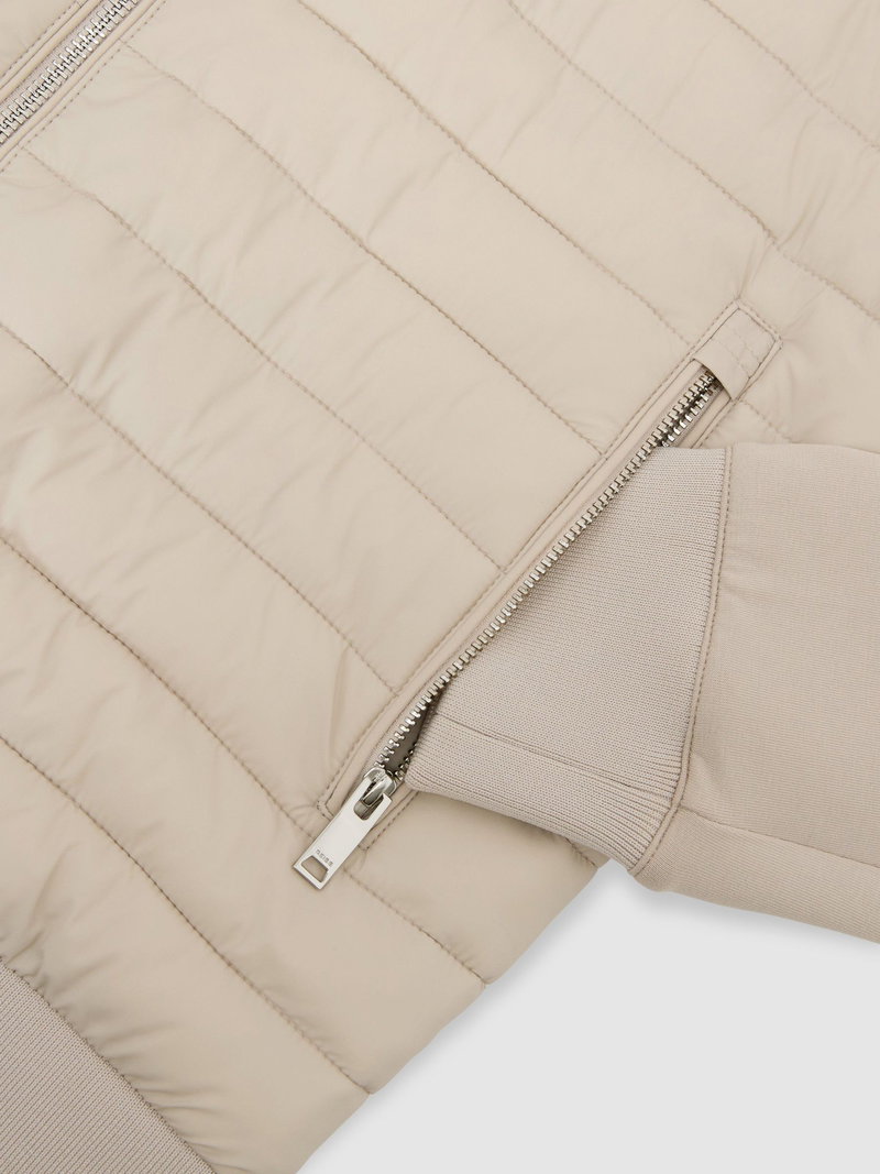Hybrid Quilt And Interlock Zip Jacket In Light Stone