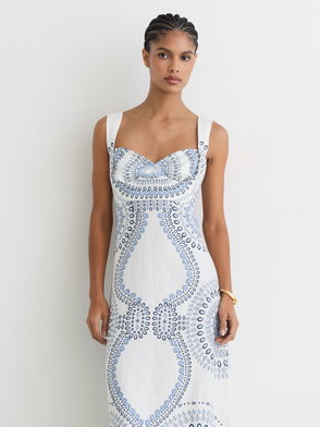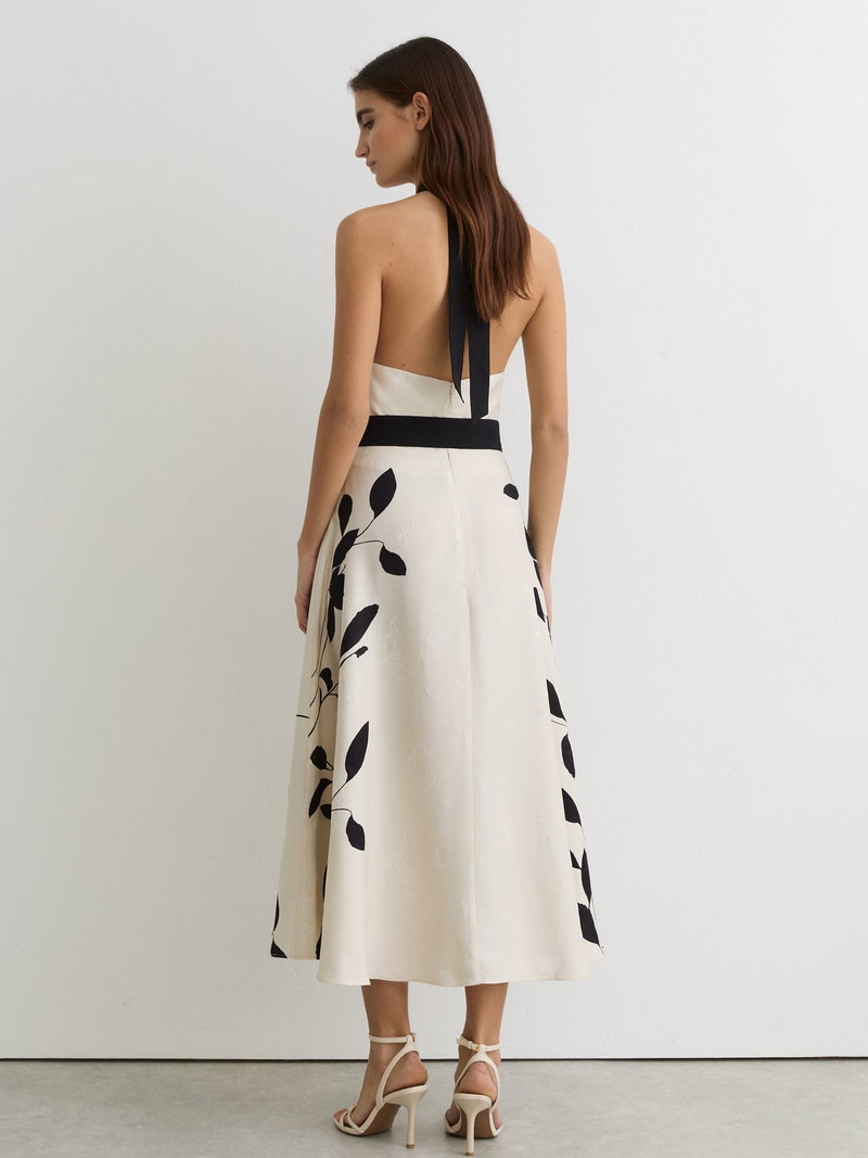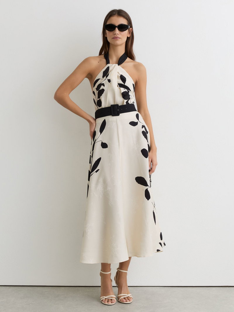 Jacquard Printed Halterneck Midi Dress In Ivory/Black