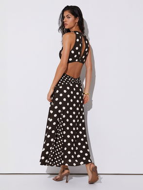 Jersey Polka-Dot Racer Midi Dress In Brown