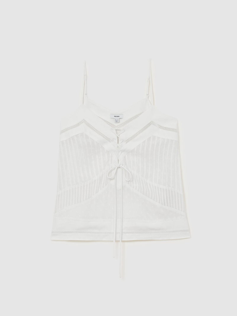 Lace-Up Semi-Sheer Cami Top In Ivory