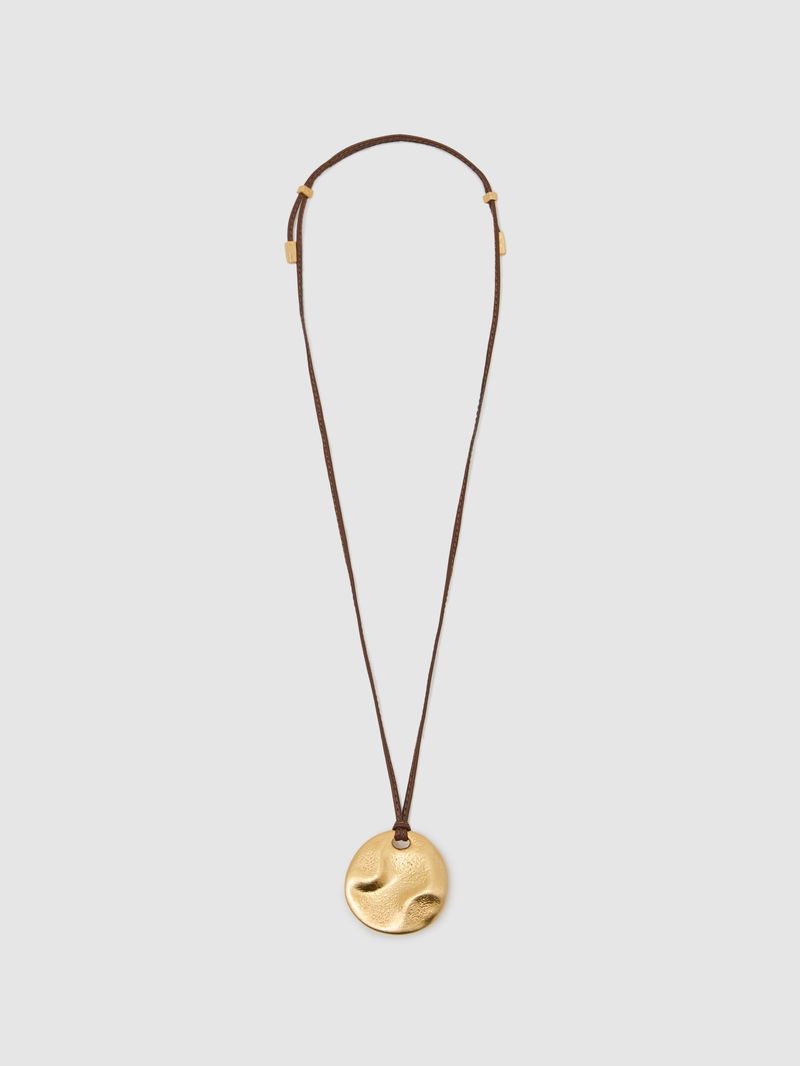 Large Cord Pendant Necklace In Gold Tone