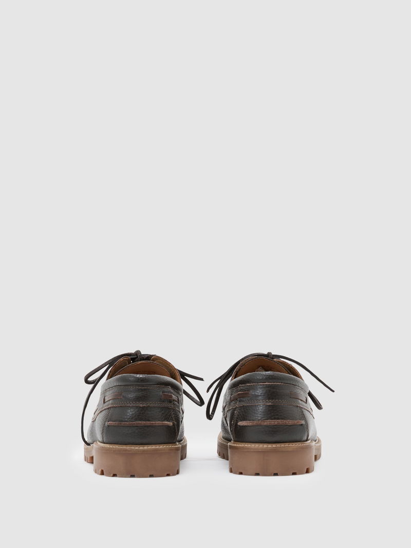The Clark is a modern boat shoe crafted from supple grained leather. It’s fastened with leather laces and has a chunky rubber lug sole. Grained leather Stitched apron toe Leather lacing Lace-up closure Chunky rubber sole.