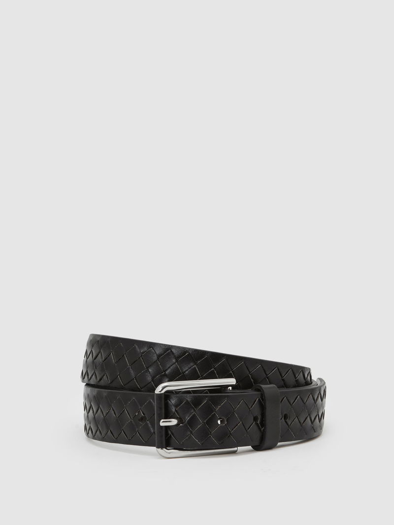 Leather Woven Belt In Black