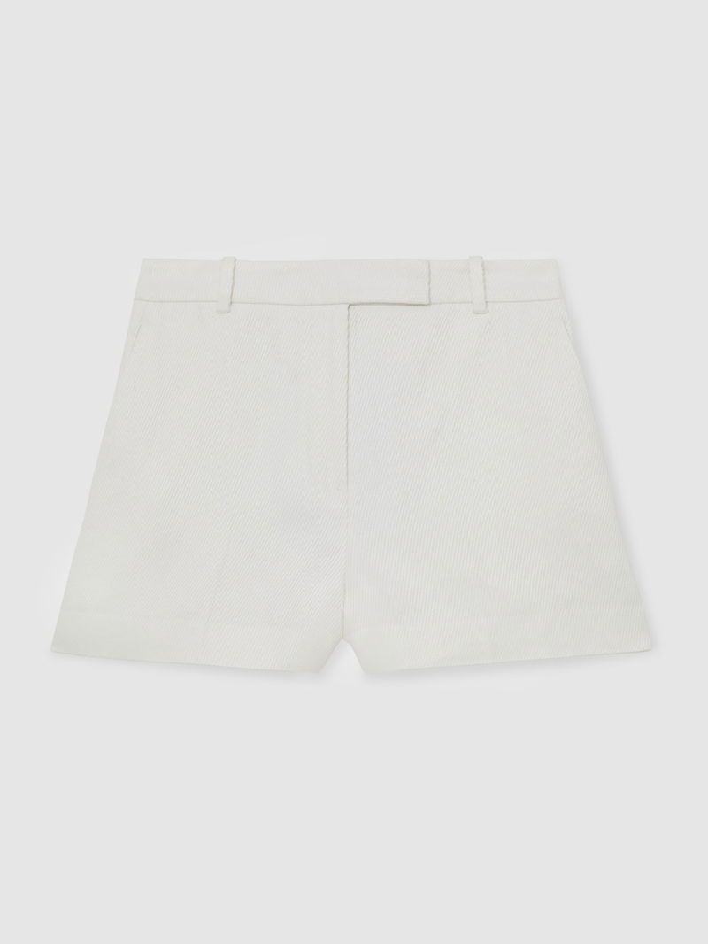 The White Alyx shorts are tailored from linen-blend twill for a sharp, summer-ready look. They’re finished with side slip pockets, back welt pockets and a hook-and-bar closure.