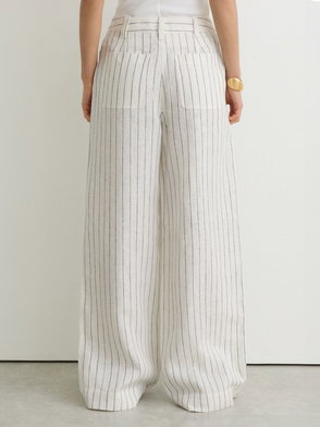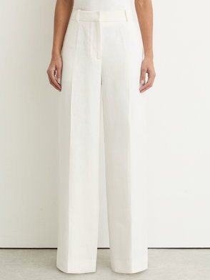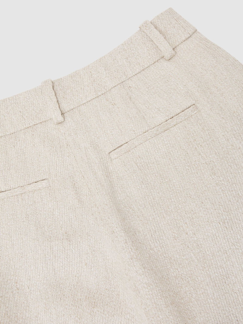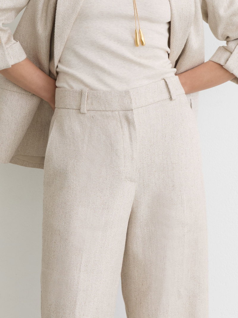 Linen-Blend Textured WIde-Leg Trousers In Neutral