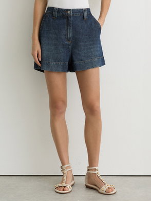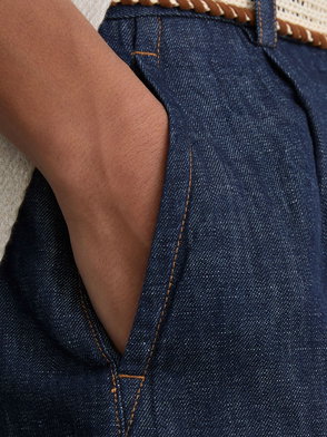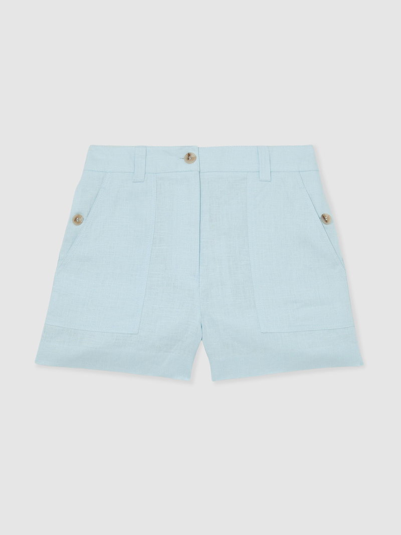 Linen Chambray Shorts In Light Blue