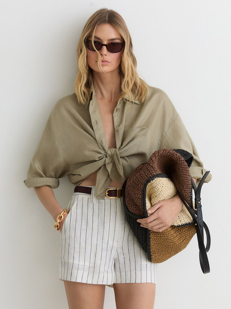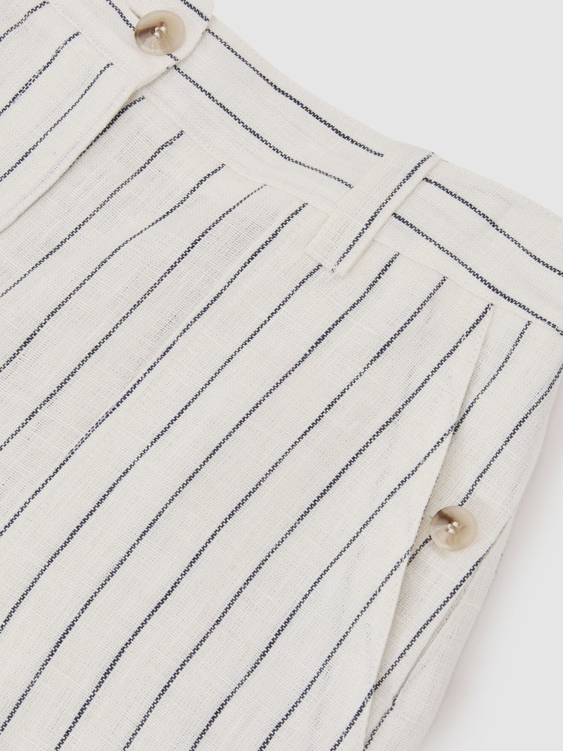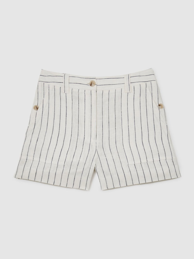 Linen Chambray Shorts In White/Navy