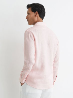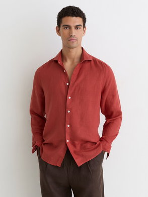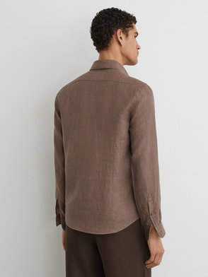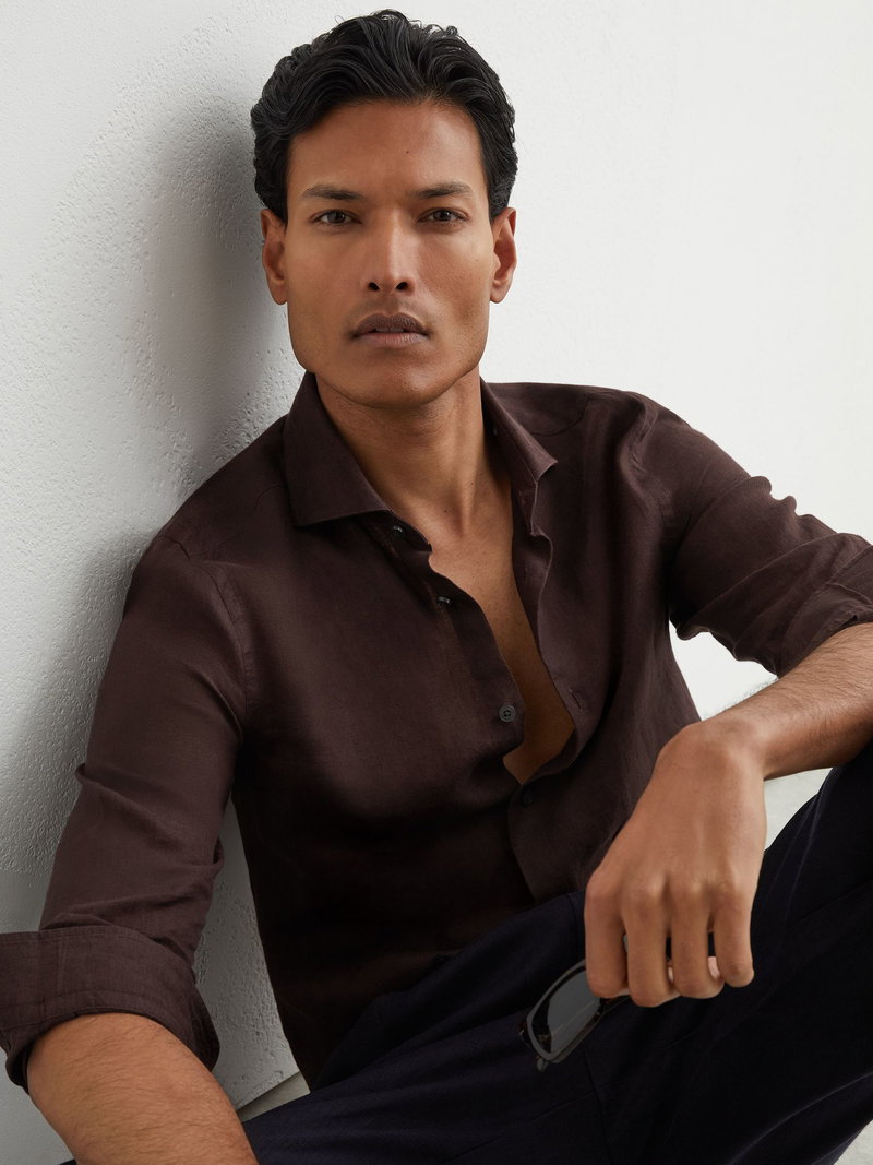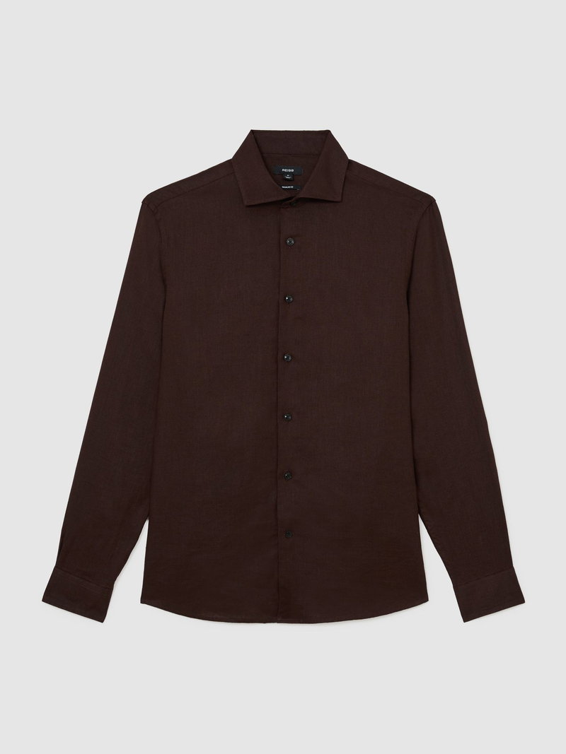 Linen Cutaway-Collar Regular-Fit Shirt In Chocolate Brown