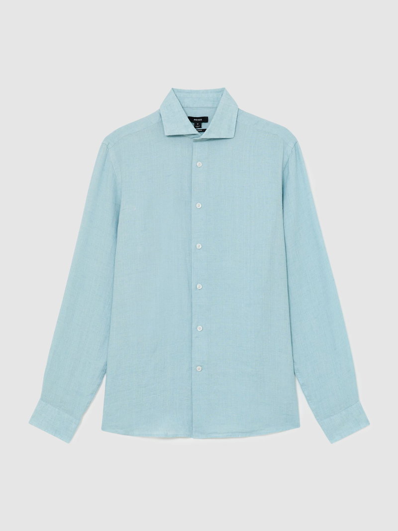Linen Cutaway-Collar Regular-Fit Shirt In Ultra Marine Green