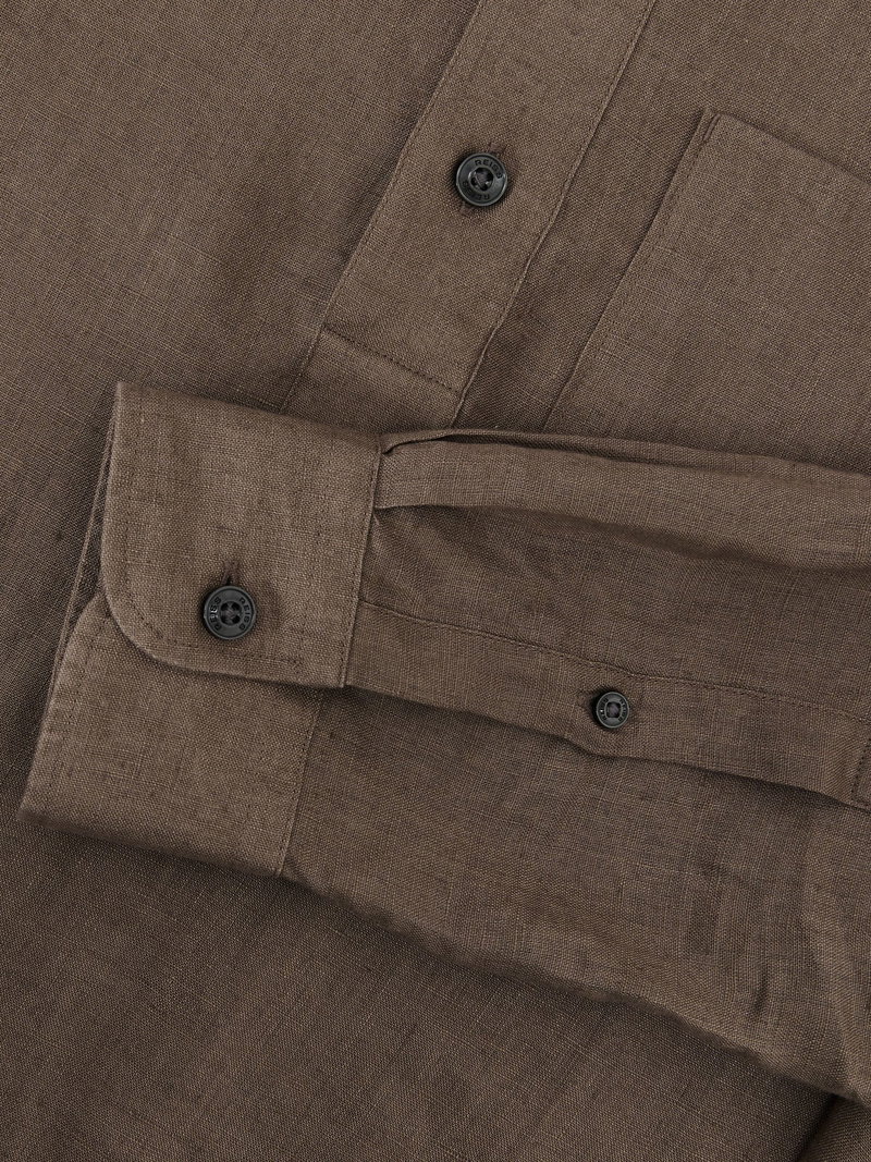 Linen Grandad-Collar Half-Button Shirt Regular-Fit In Soft Brown