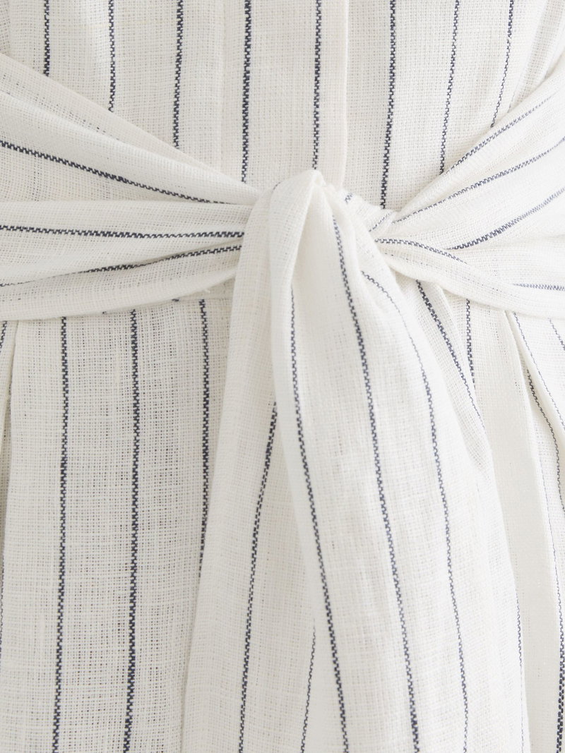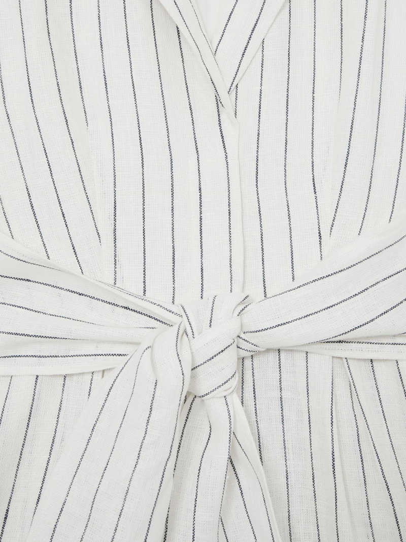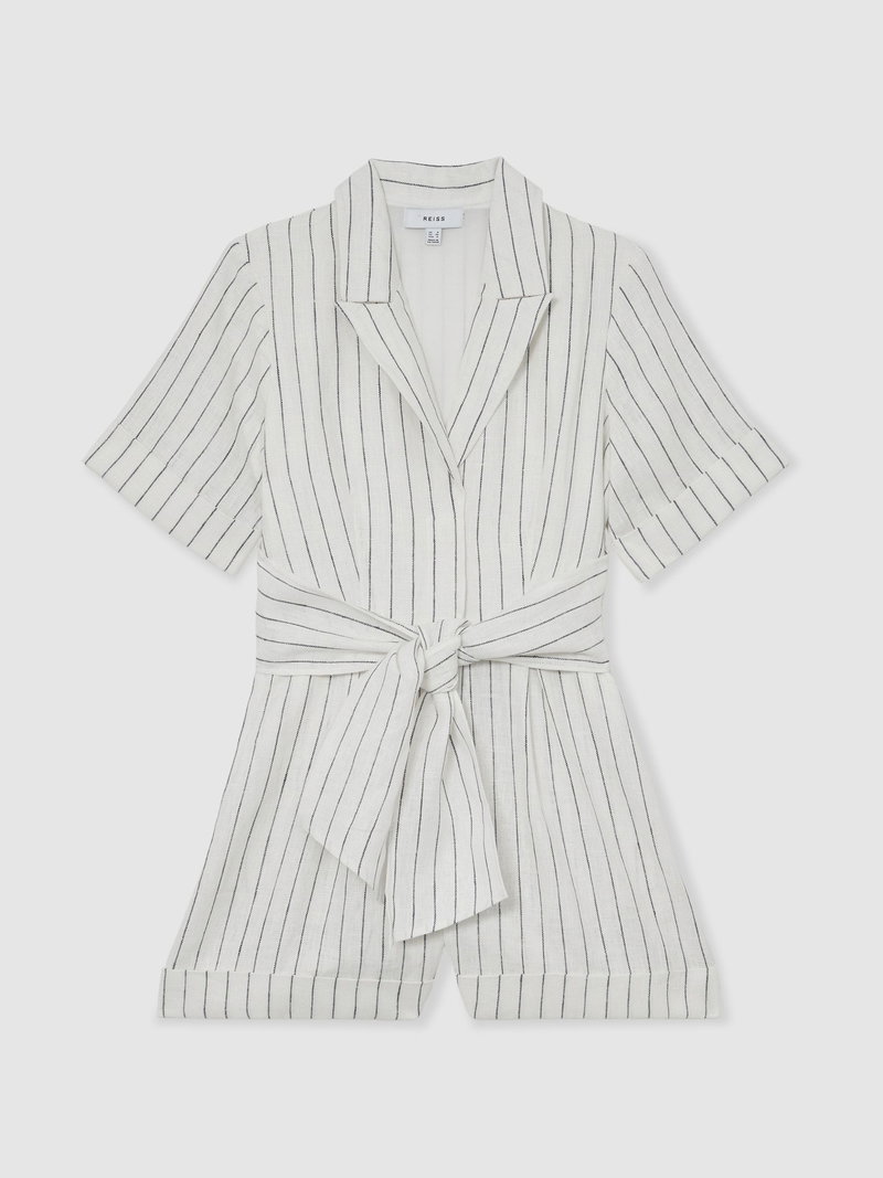 Linen Pinstripe Belted Playsuit In Ivory/Navy