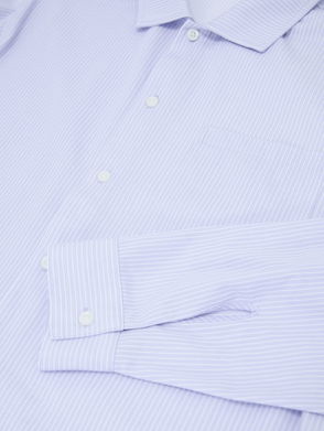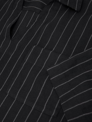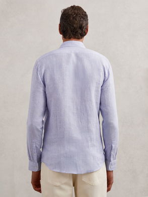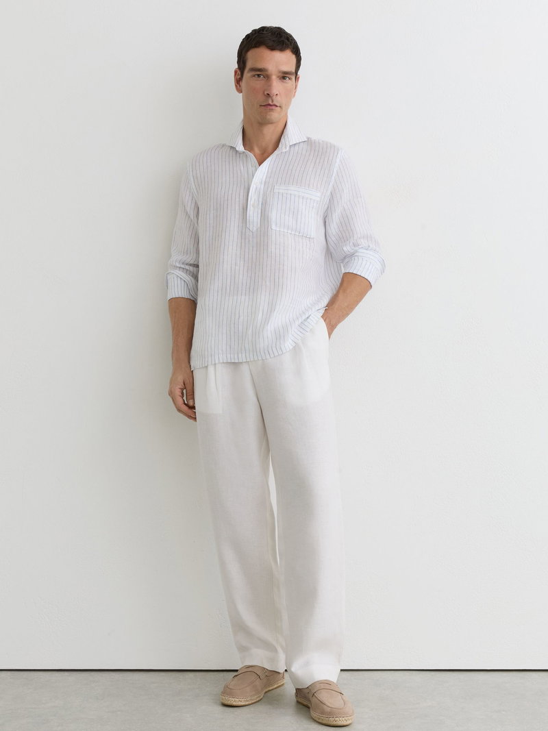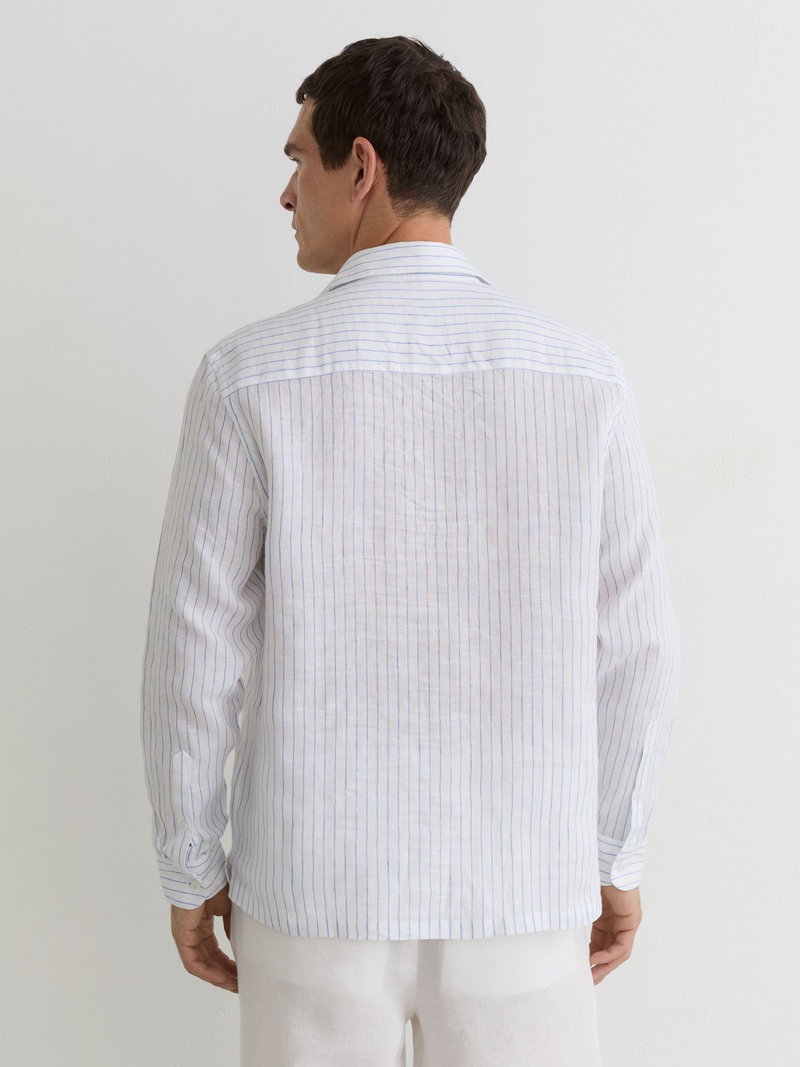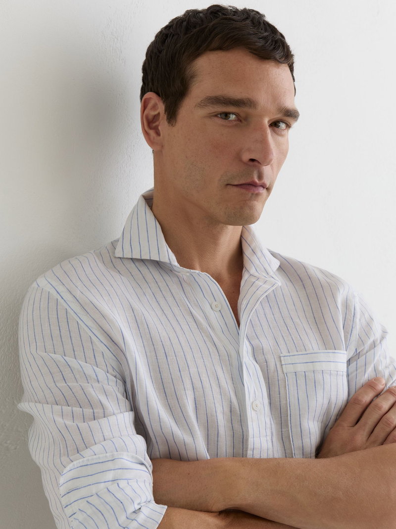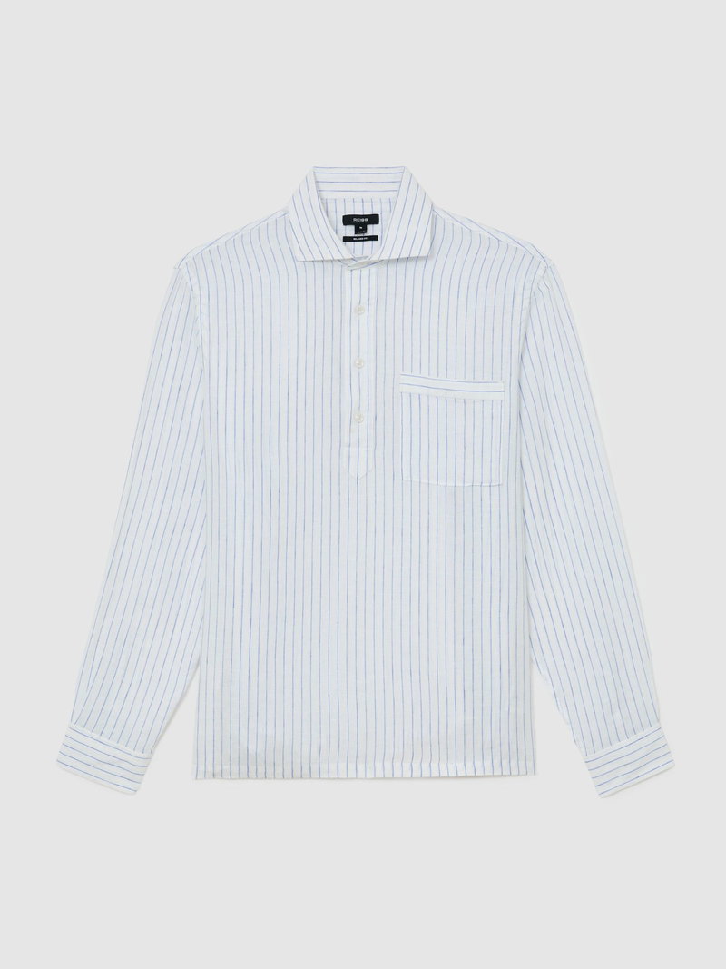 Linen Pinstripe Half-Button Shirt Regular-Fit In Airforce Blue/White Stripe