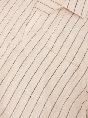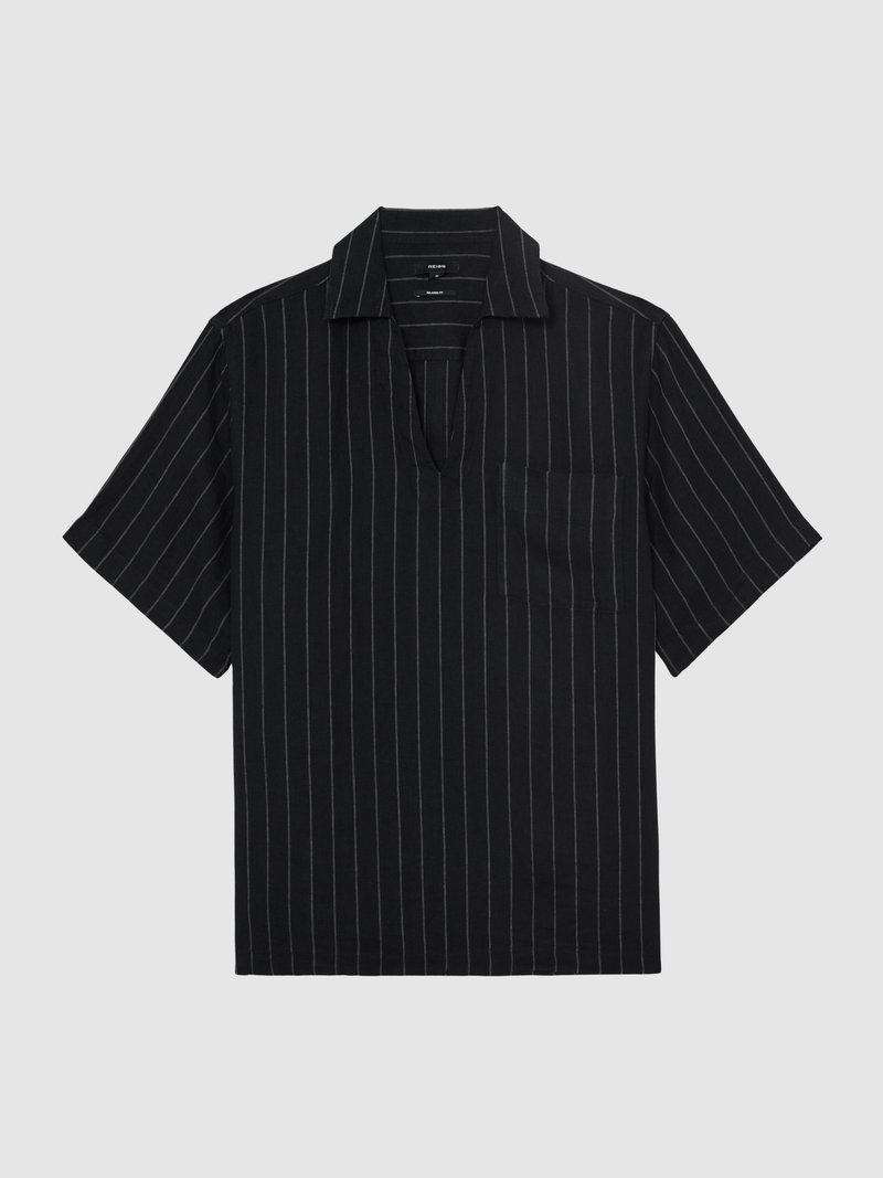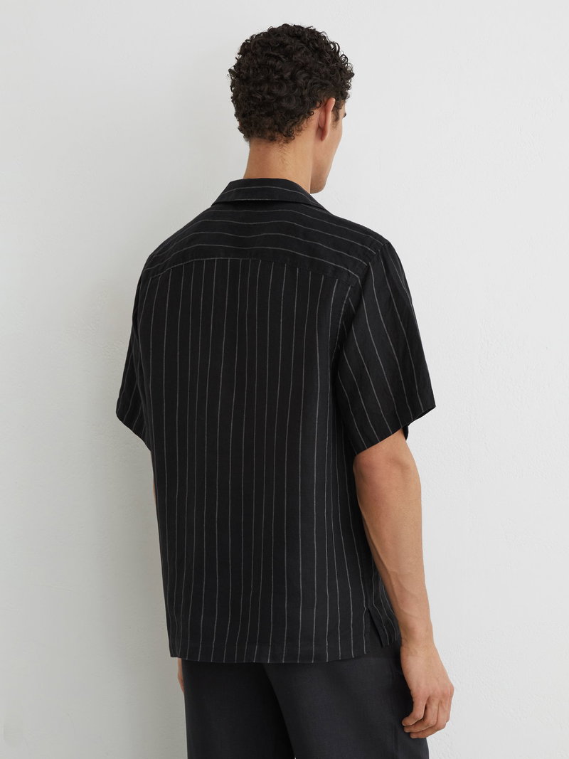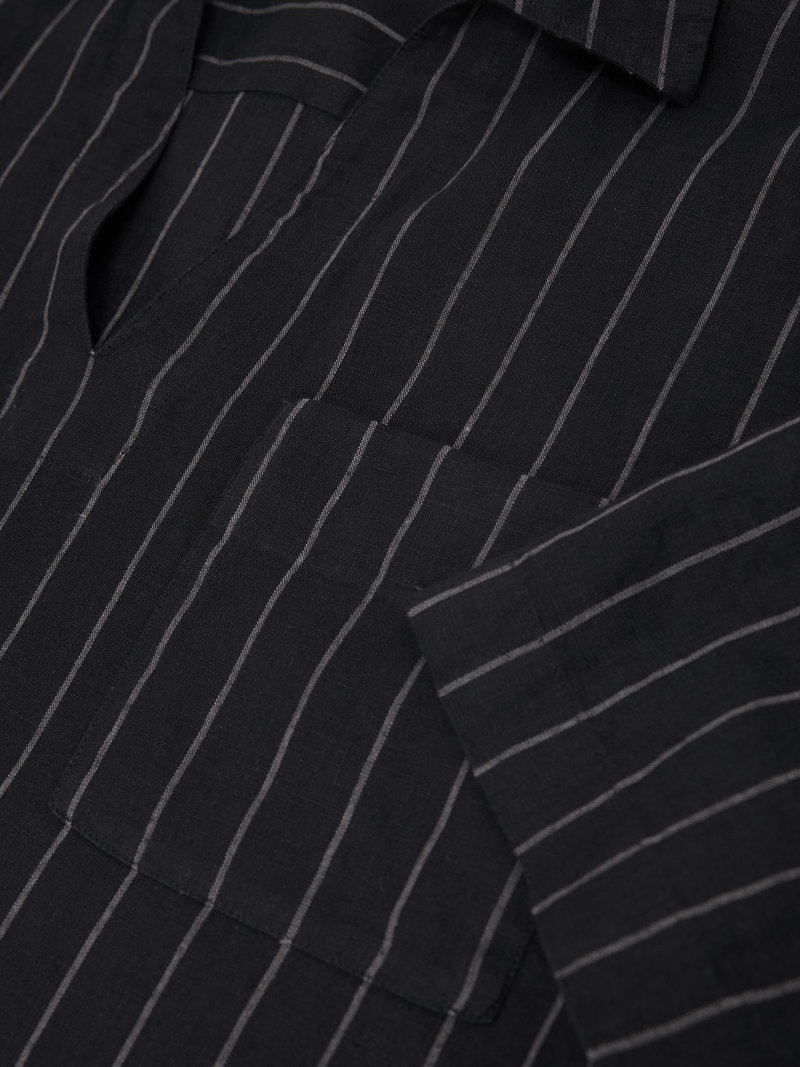 Linen Pinstripe Open-Collar Shirt In Black