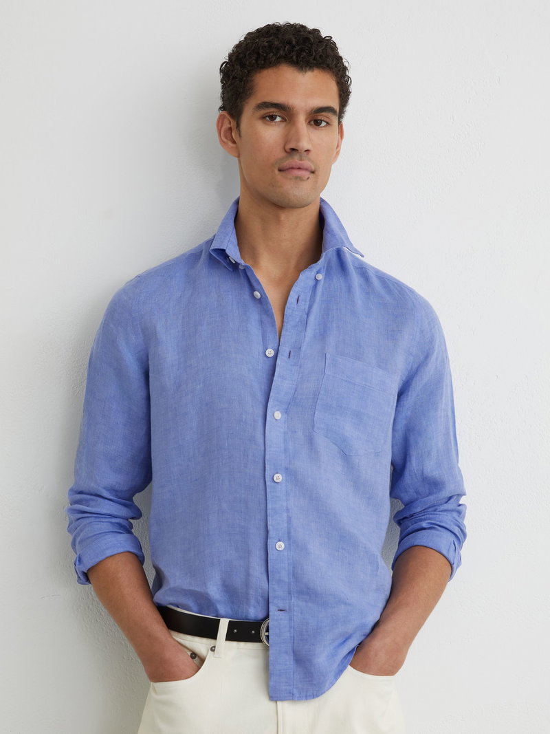 Linen Regular-Fit Button-Down Shirt In Buddy Blue