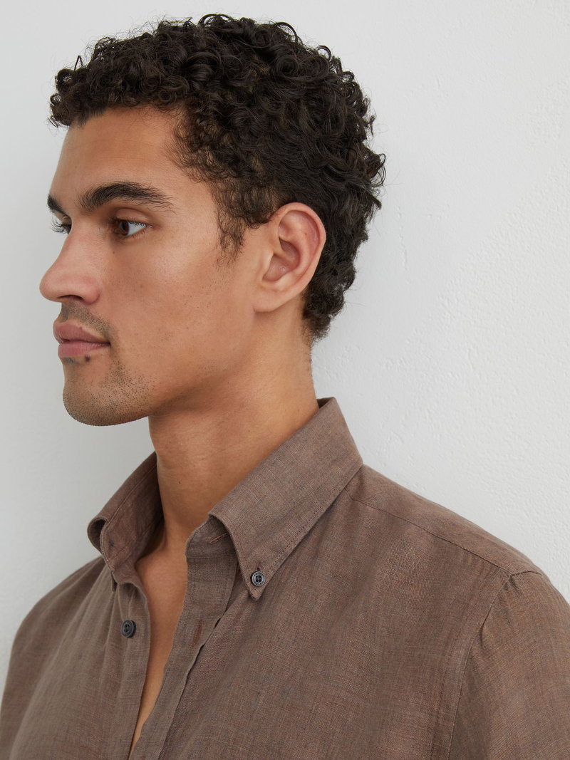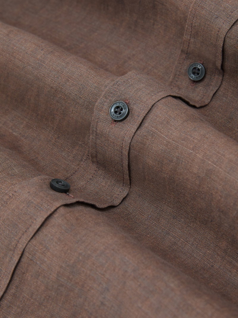 Linen Regular-Fit Button-Down Shirt In Espresso Brown