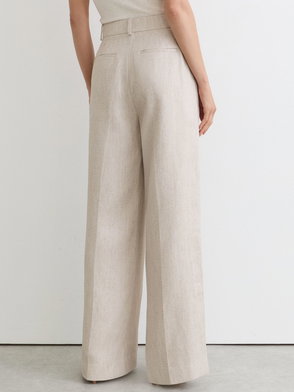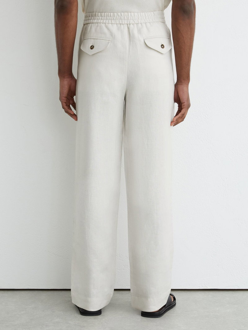 Linen Relaxed-Fit Drawstring Trousers In Stone