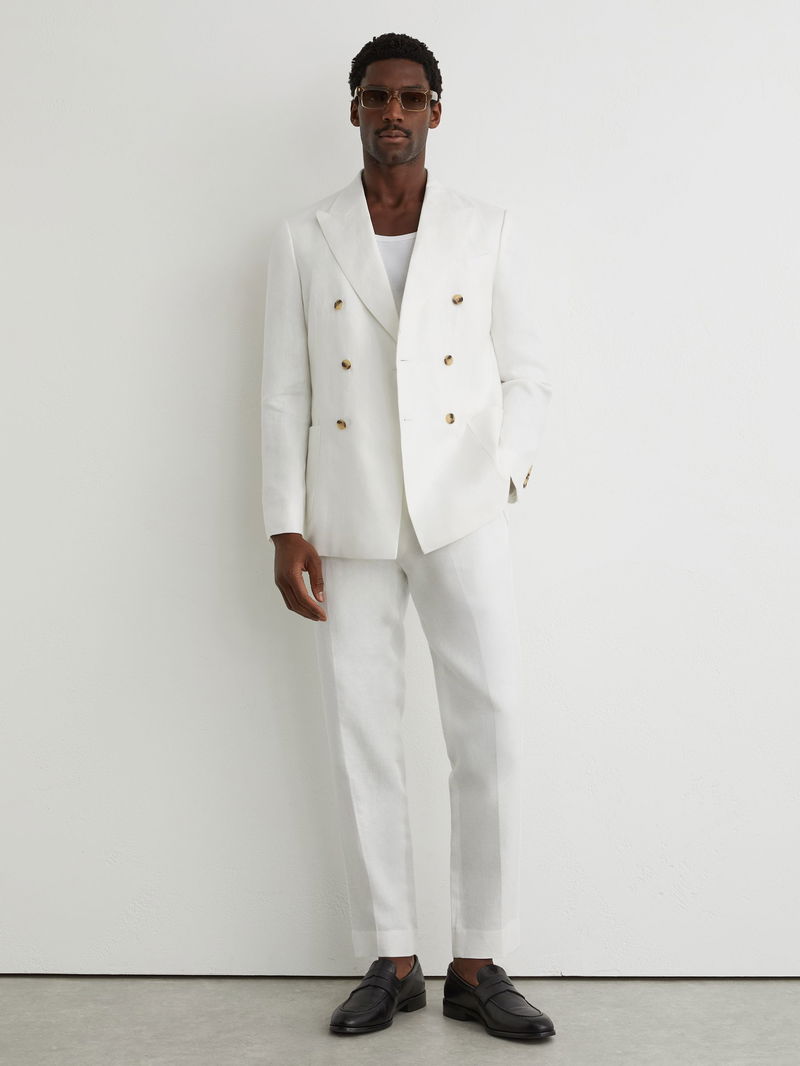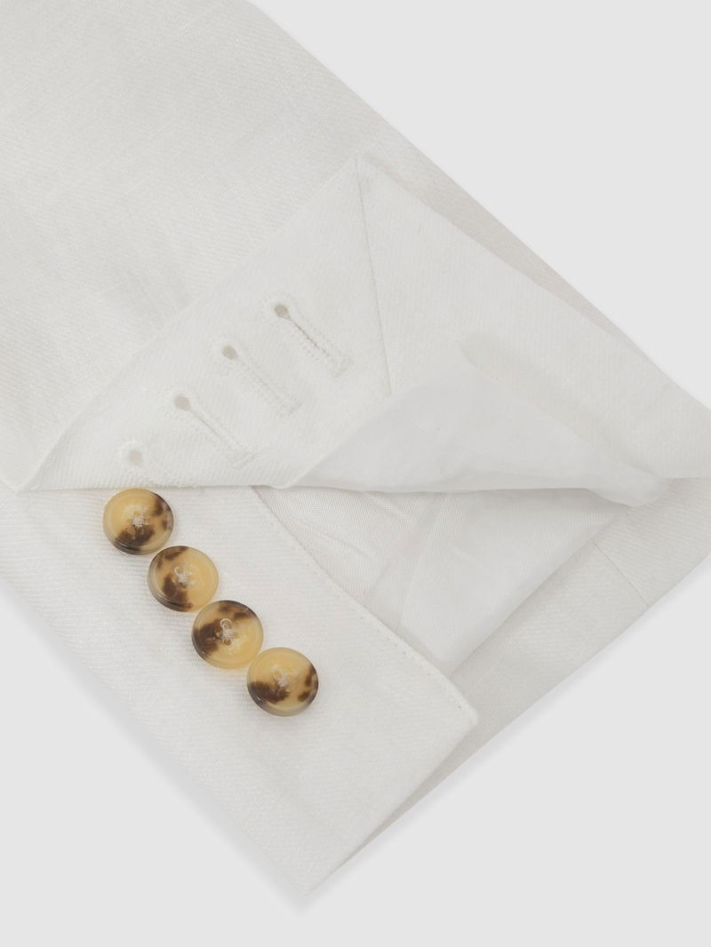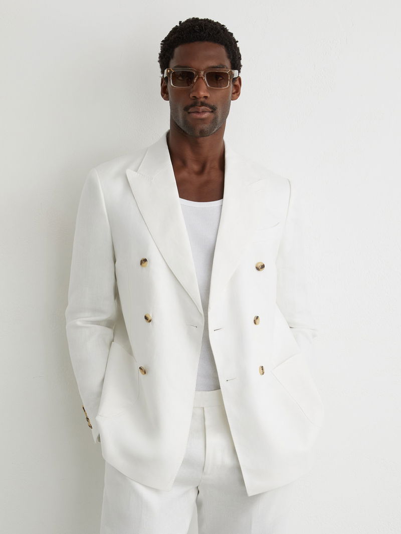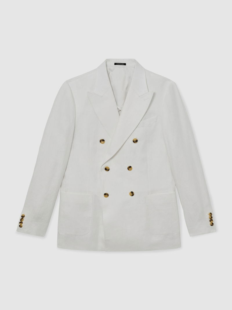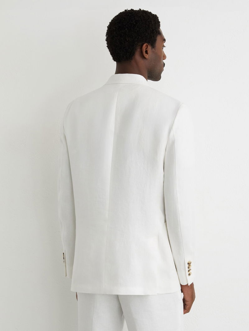 Linen-Twill Double-Breasted Blazer Tailored-Fit In White
