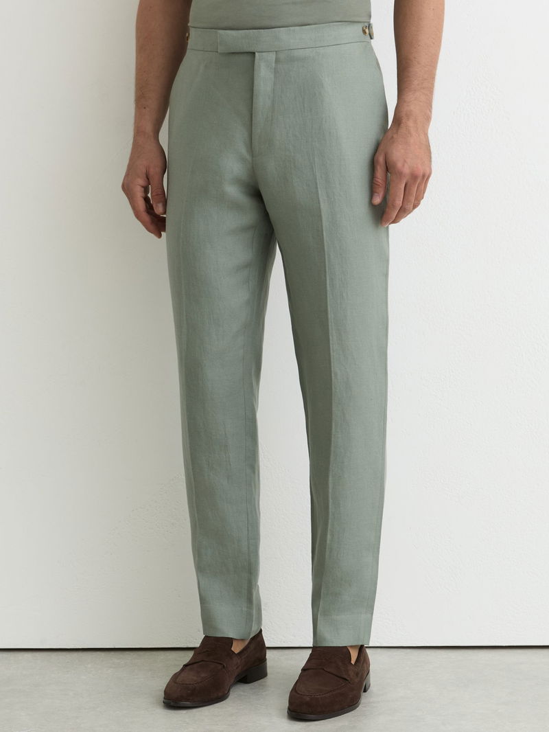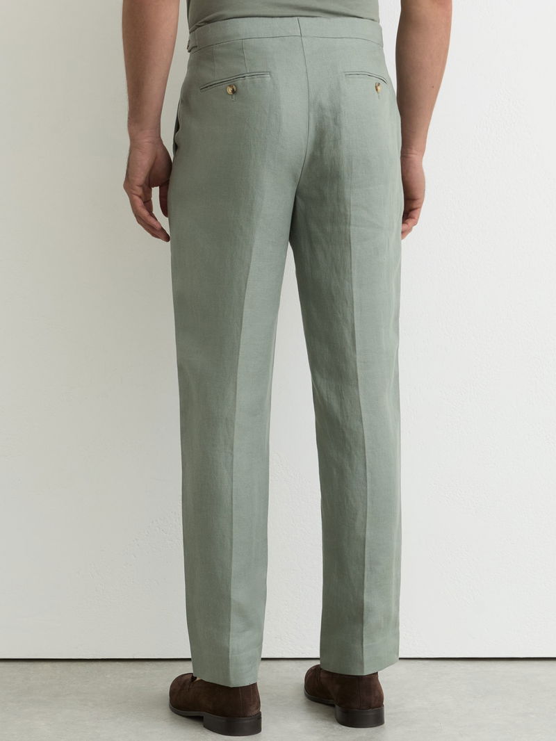 Linen-Twill Tailored-Fit Suit Trousers In Sage