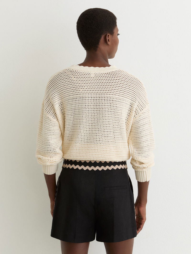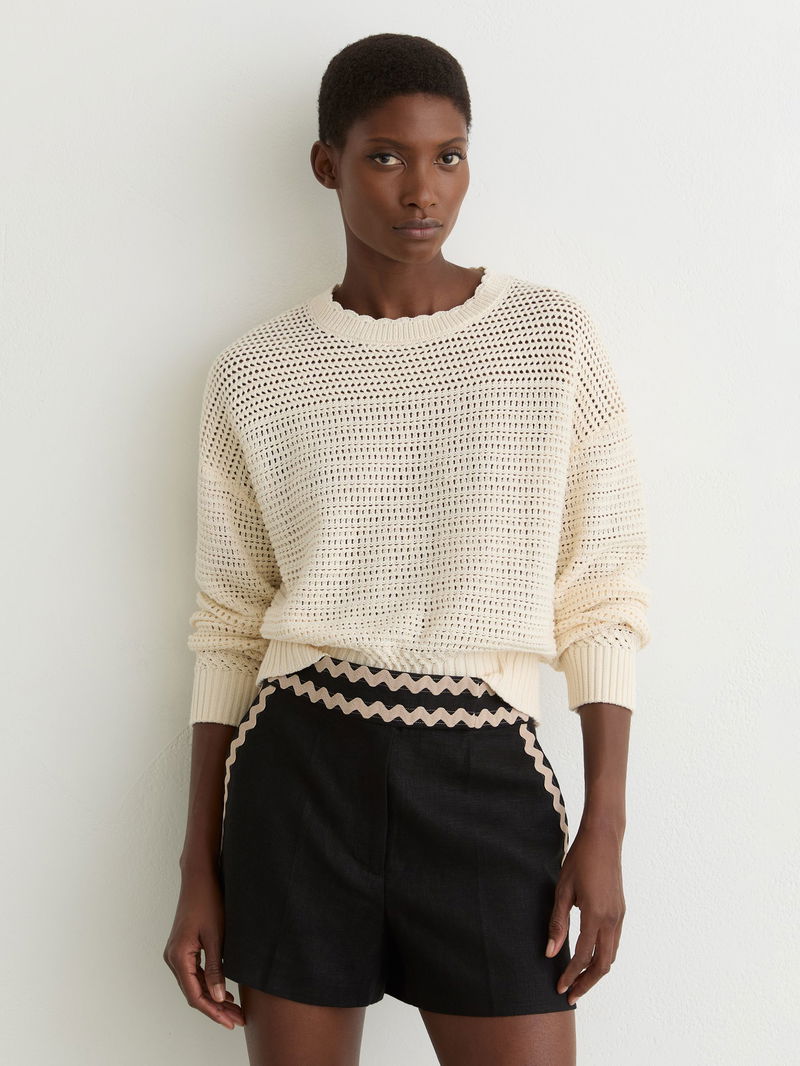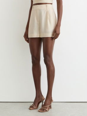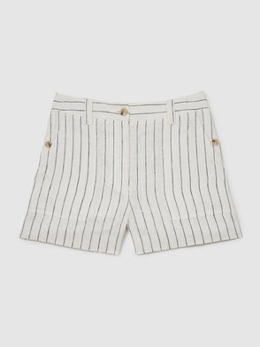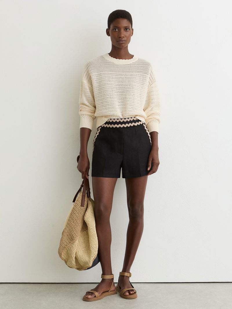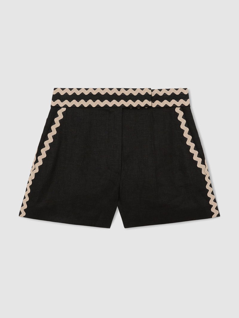 Linen Wave-Trim Shorts In Black