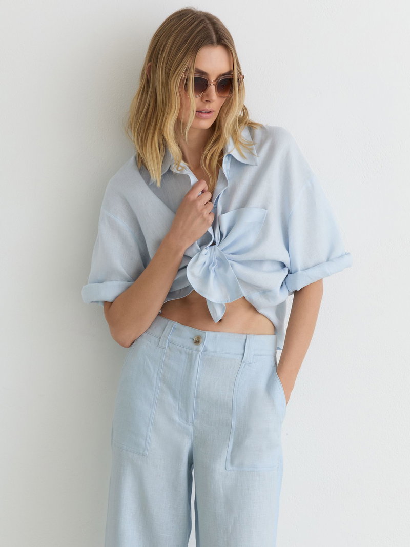 Linen Wide-Leg Trousers In Dusty Blue