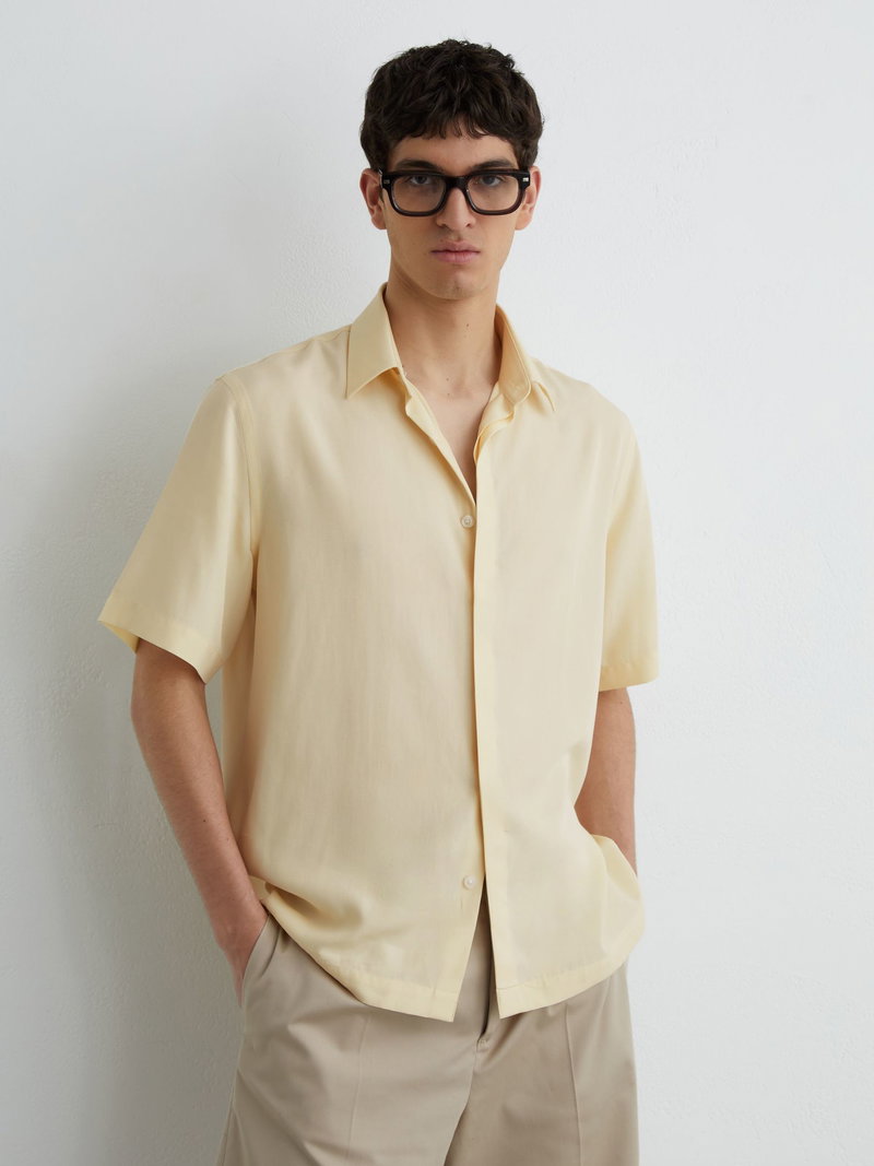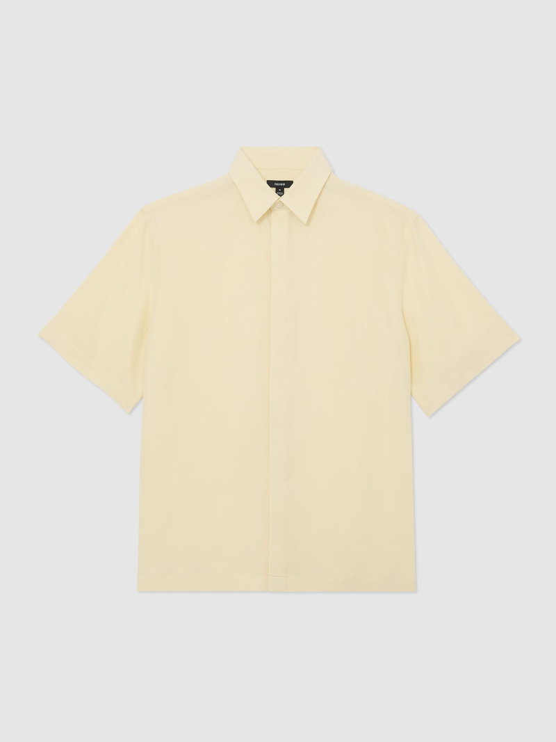Lyocell-Linen Short-Sleeve Shirt In Lemon Yellow