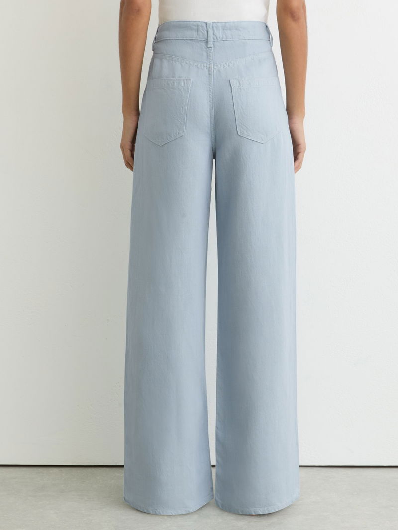 Made with at least 50% linen and lyocell. Linen is made from the fibres of the flax plant. Flax is resilient and can grow in poor soil, using less water than cotton to produce. Lyocell is made from plant cellulose. While chemicals are used in its production, it is a closed-loop process, meaning that chemicals can be extracted and waste water reused.'
