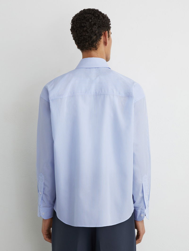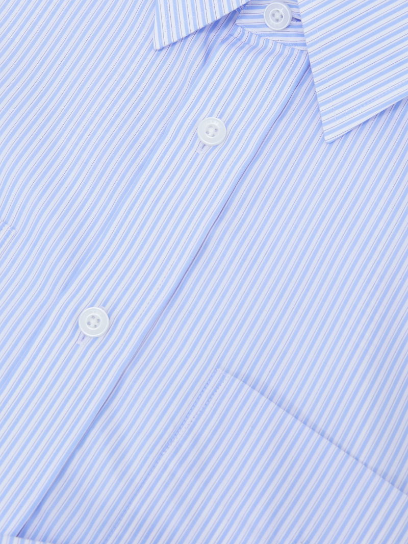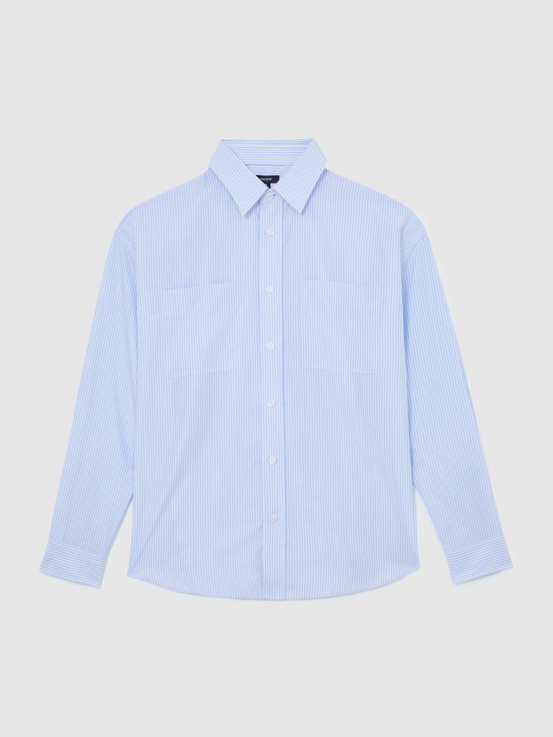 Lyocell Stripe Button-Through Overshirt In Soft Blue