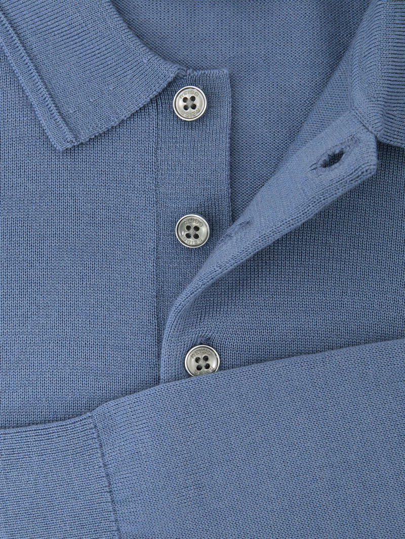 Merino Wool Long-Sleeve Polo Shirt In Nordic Blue
