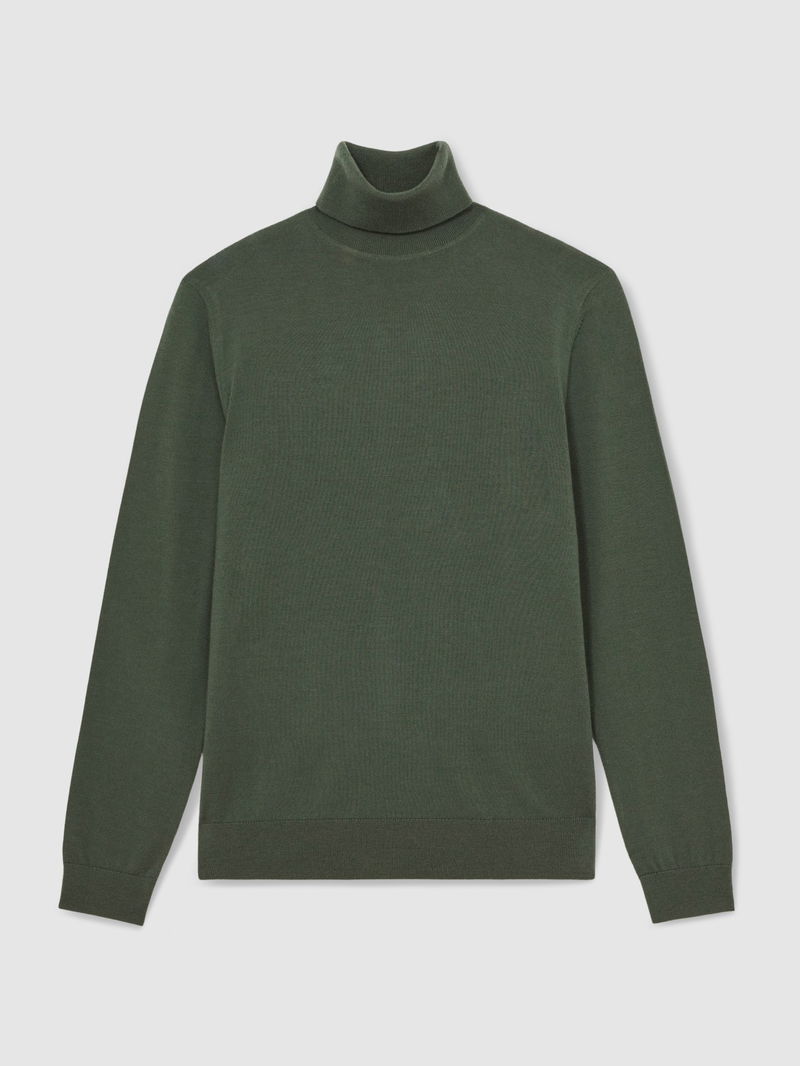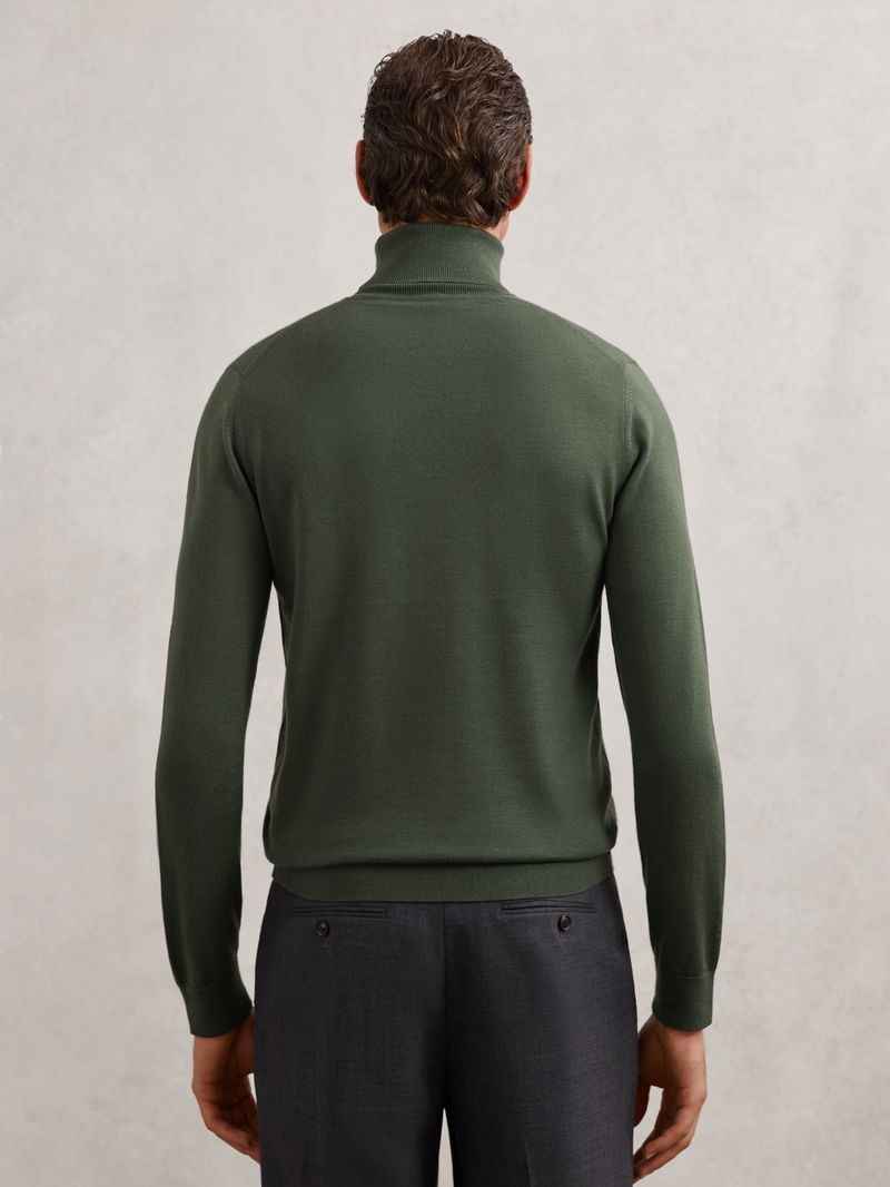 Merino Wool Roll-Neck Jumper In Kale Green