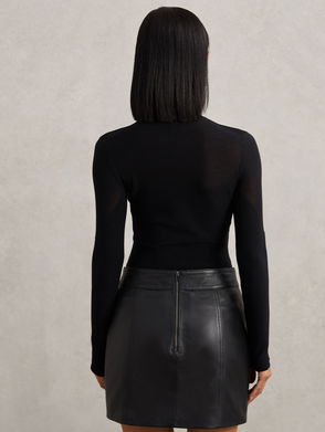 Mesh Knit Sweetheart Long-Sleeve Top.