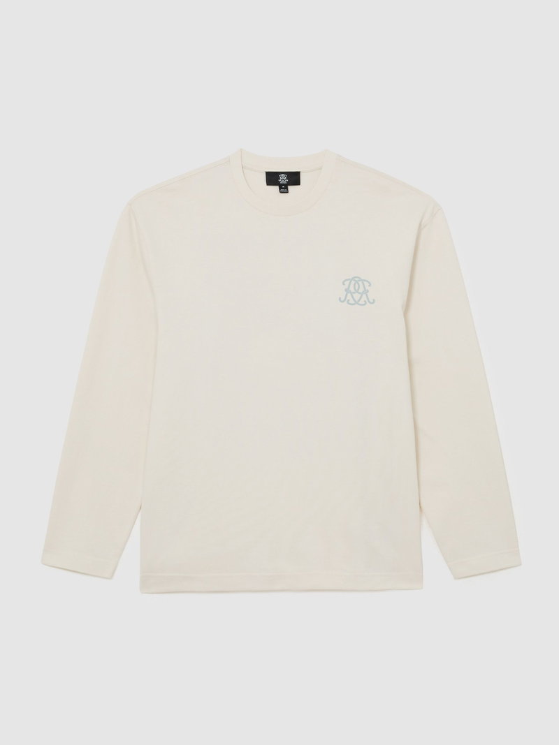 Monogram Butter-Print Long-Sleeve Relaxed T-Shirt In White