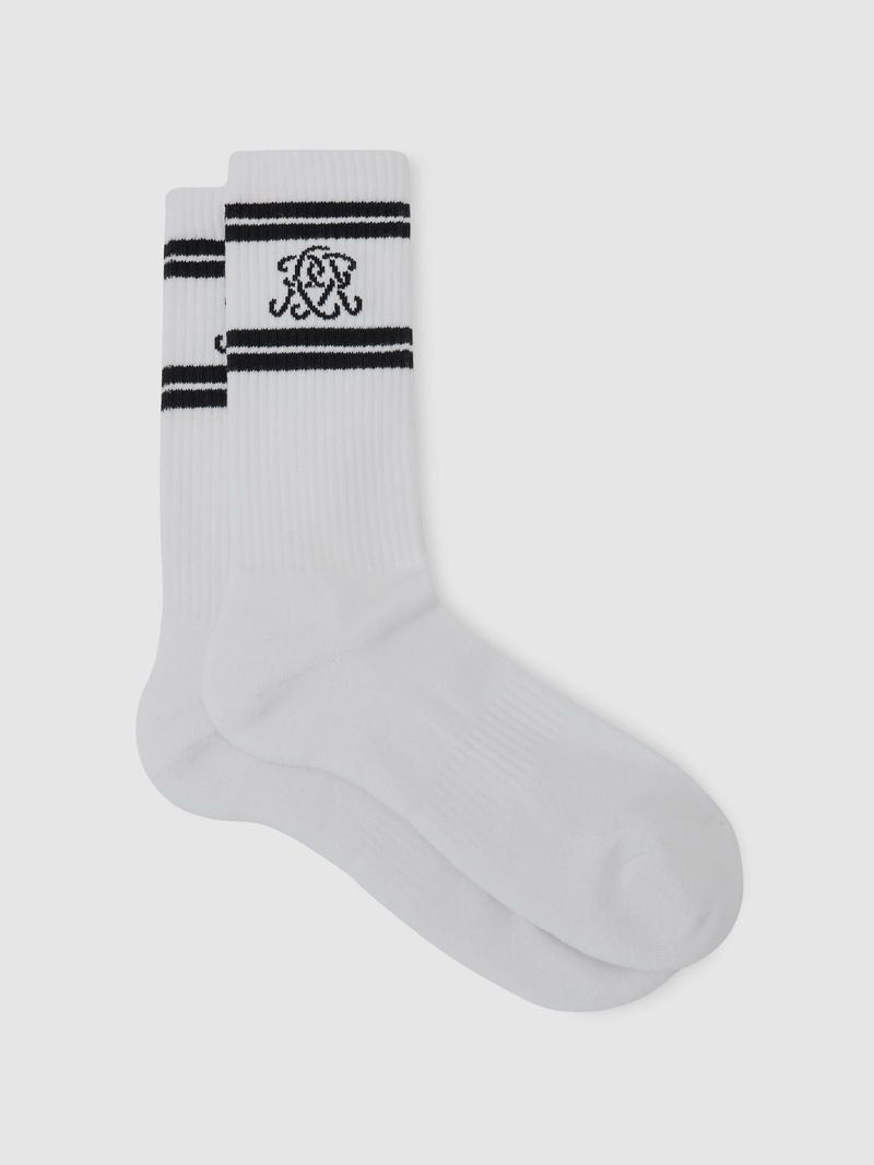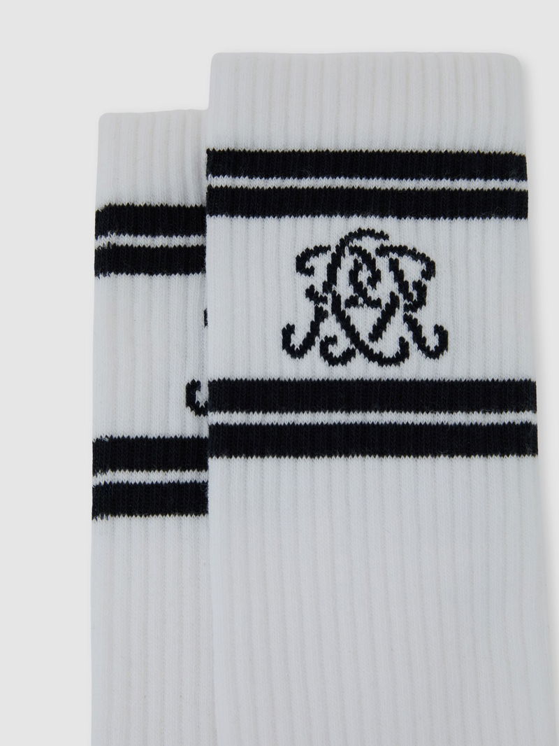 Monogram Cotton-Blend Ribbed Socks In White/Navy