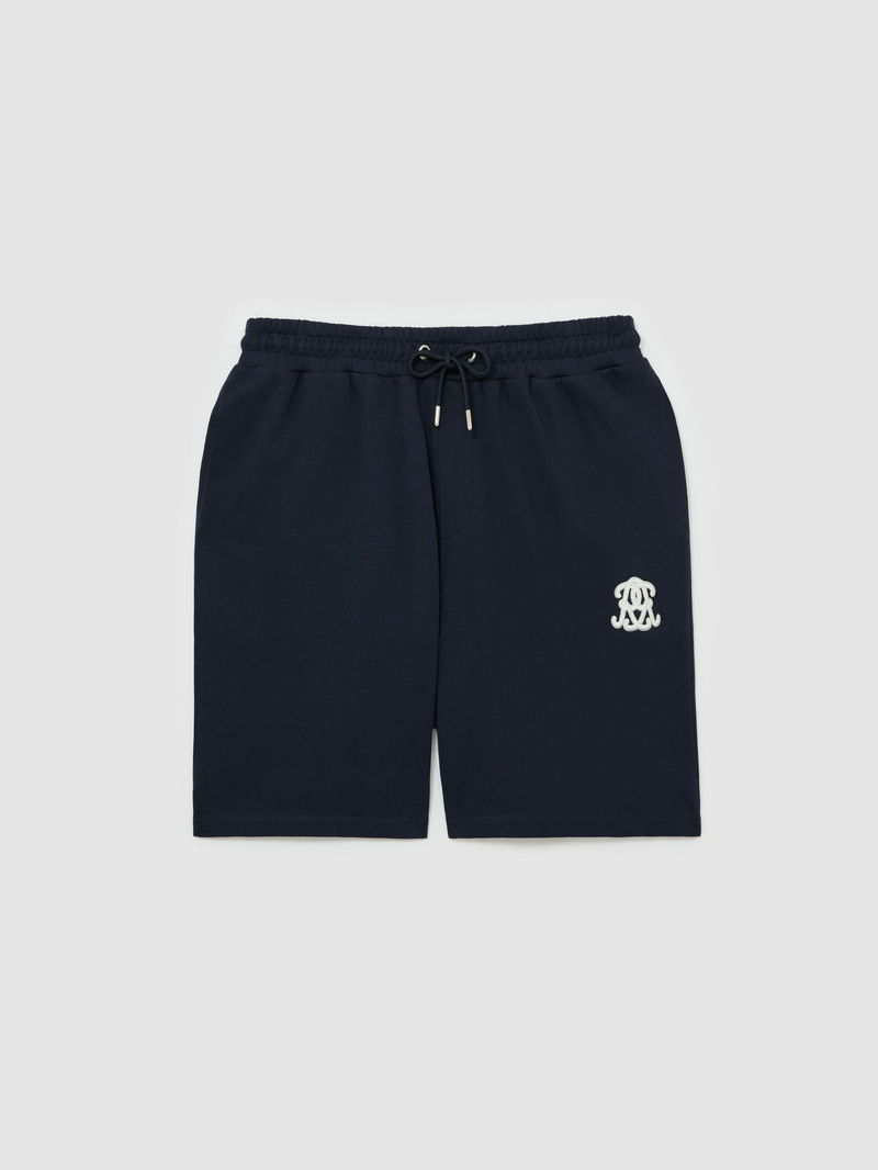 Monogram Embroidered Cotton Shorts In Navy