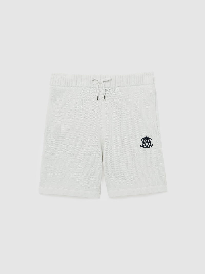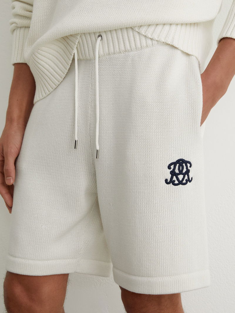 Monogram-Embroidered Relaxed Knit Shorts In Off White
