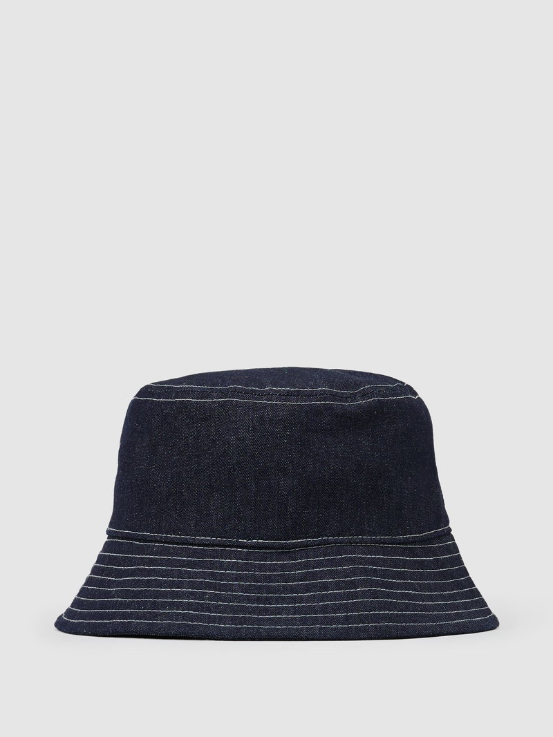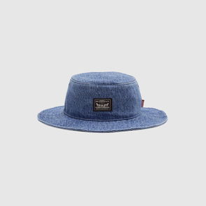 Monogram-Patch Denim Bucket Hat In Mid Blue