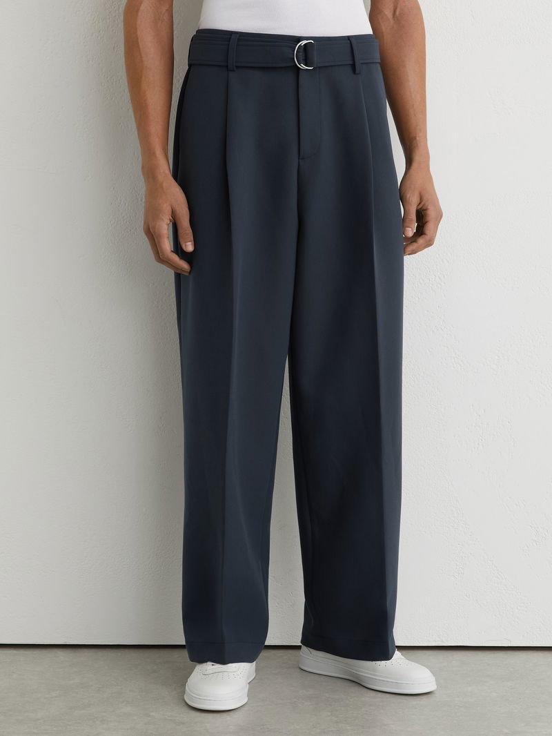 Expertly Airforce Blue tailored with a relaxed, wide-leg silhouette, the Atwell trousers combine effortless ease with modern refinement. Front pleats and a coordinating D-ring belt add subtle structure, making them a versatile addition to any smart-casual wardrobe.