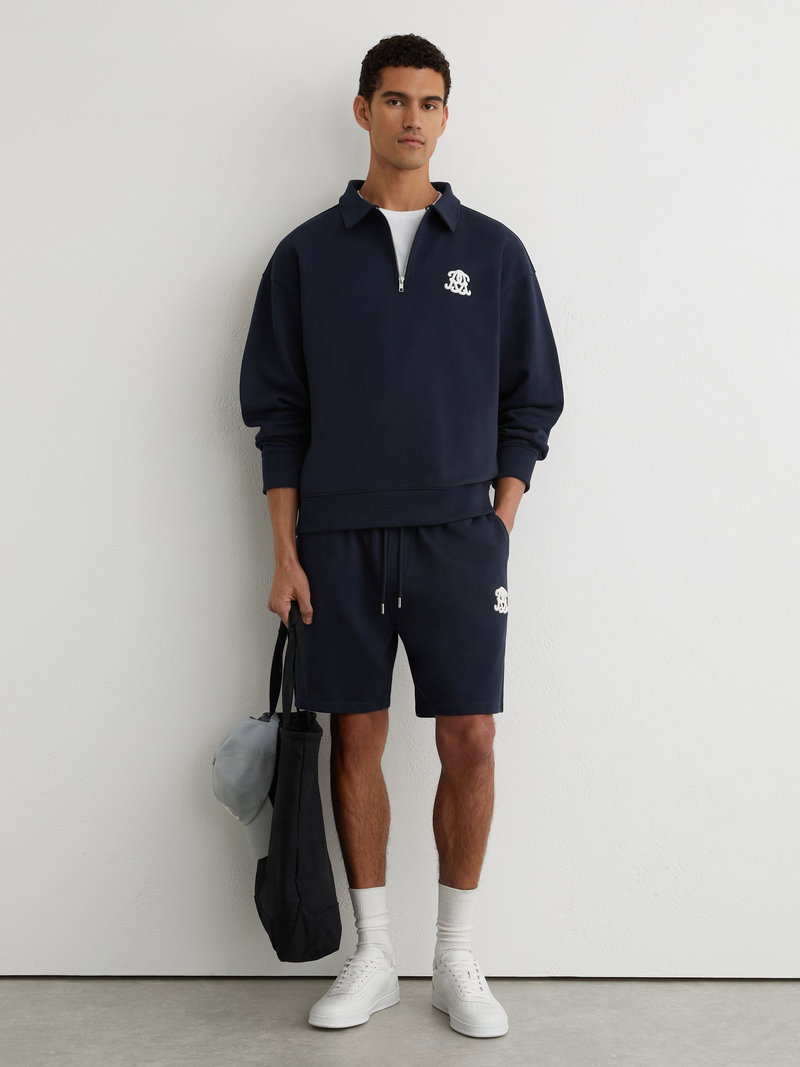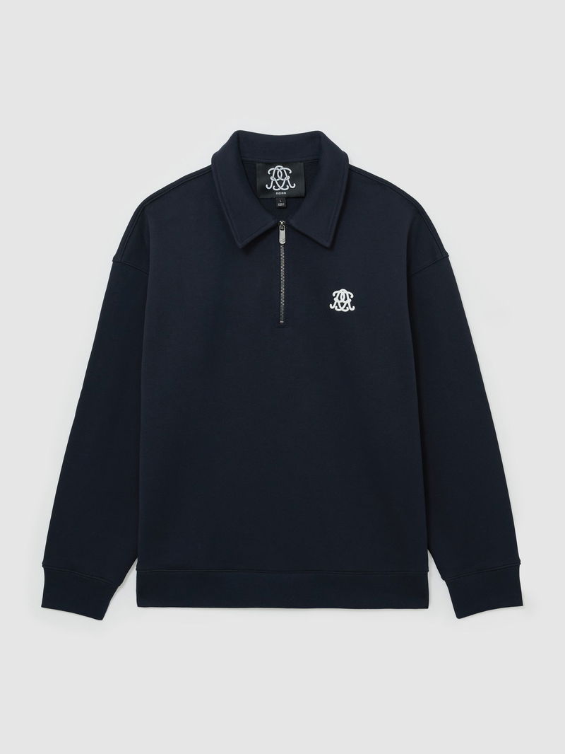 Monogram Relaxed Half-Zip Sweatshirt In Navy